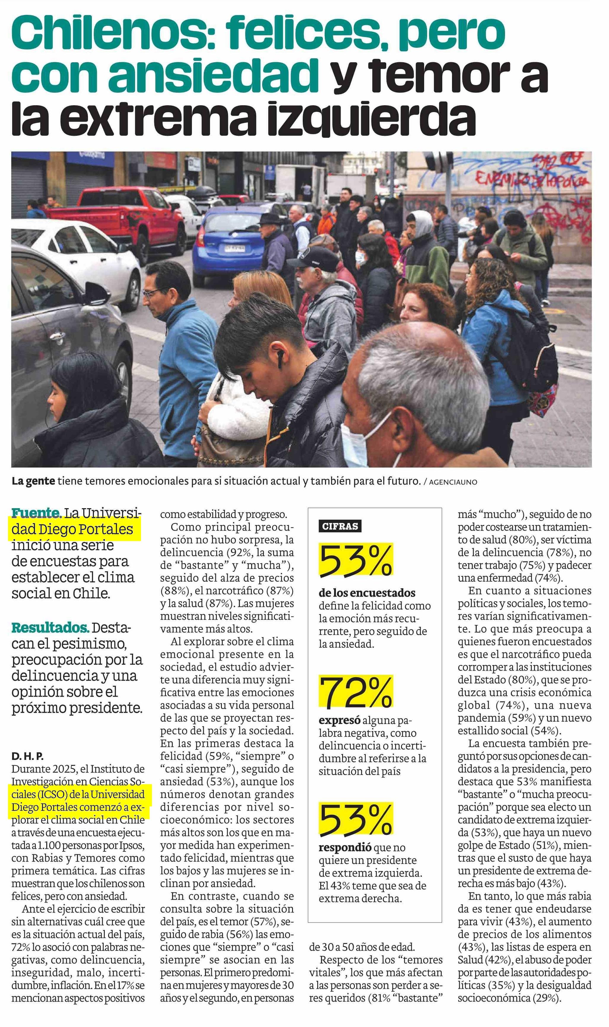 | Título: | Chilenos: felices, pero con ansiedad y temor a la extrema izquierda |