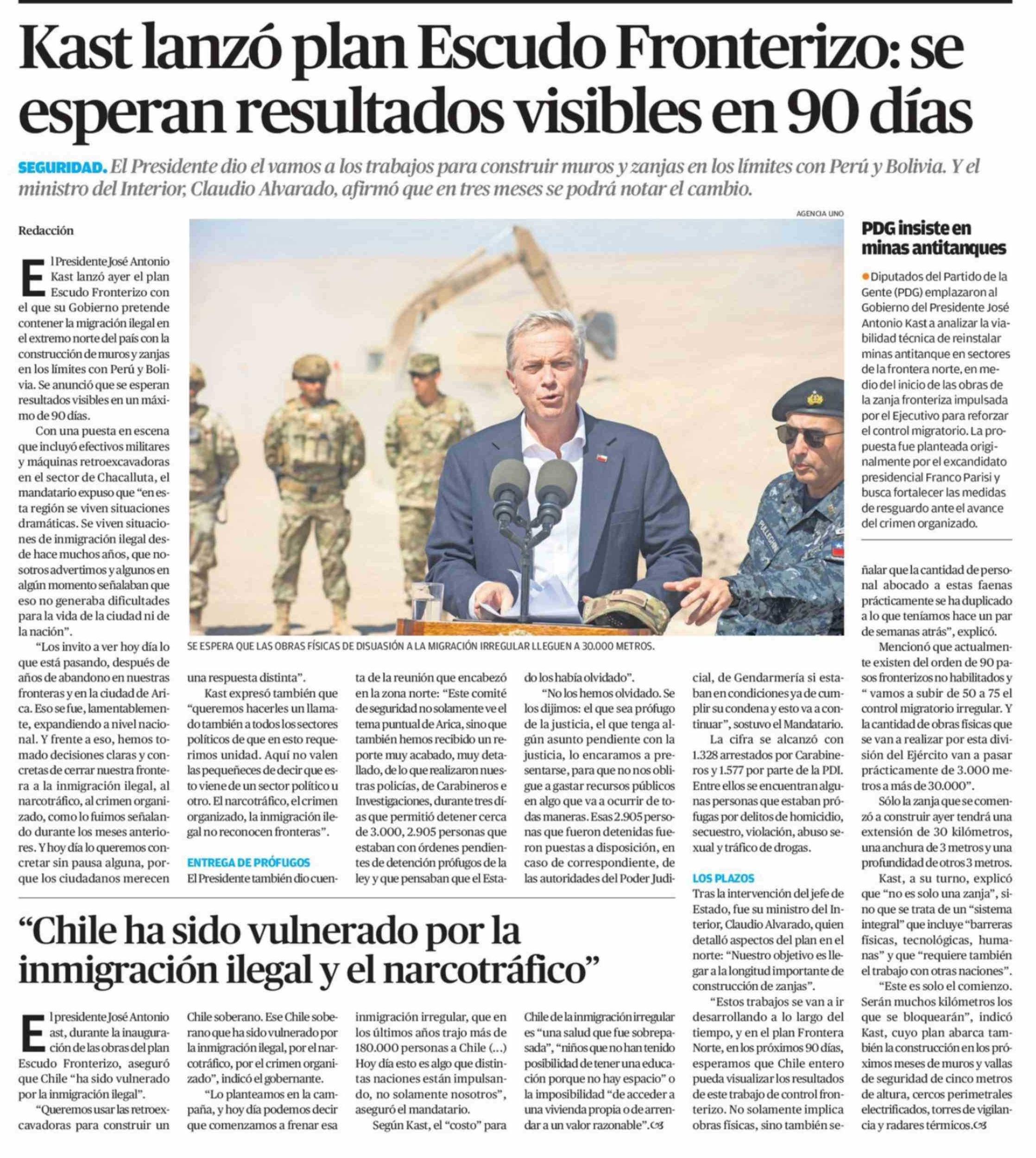 Título: Kast lanzó plan Escudo Fronterizo: se esperan resultados visibles en 90 días