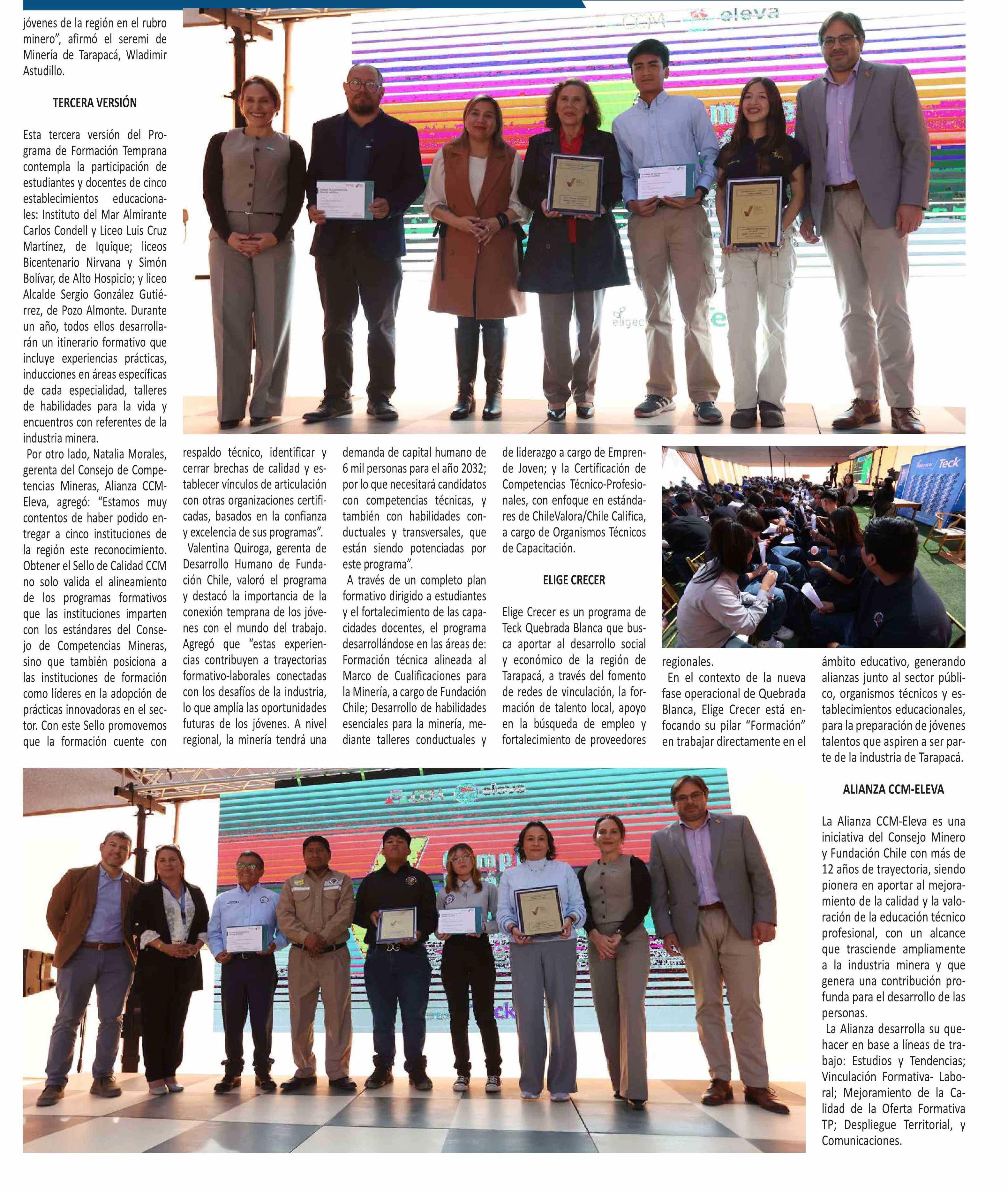 | Título: | Especialidades de liceos Técnico-Profesionales de la región reciben Sello de Calidad con altos estándares para la minería |
