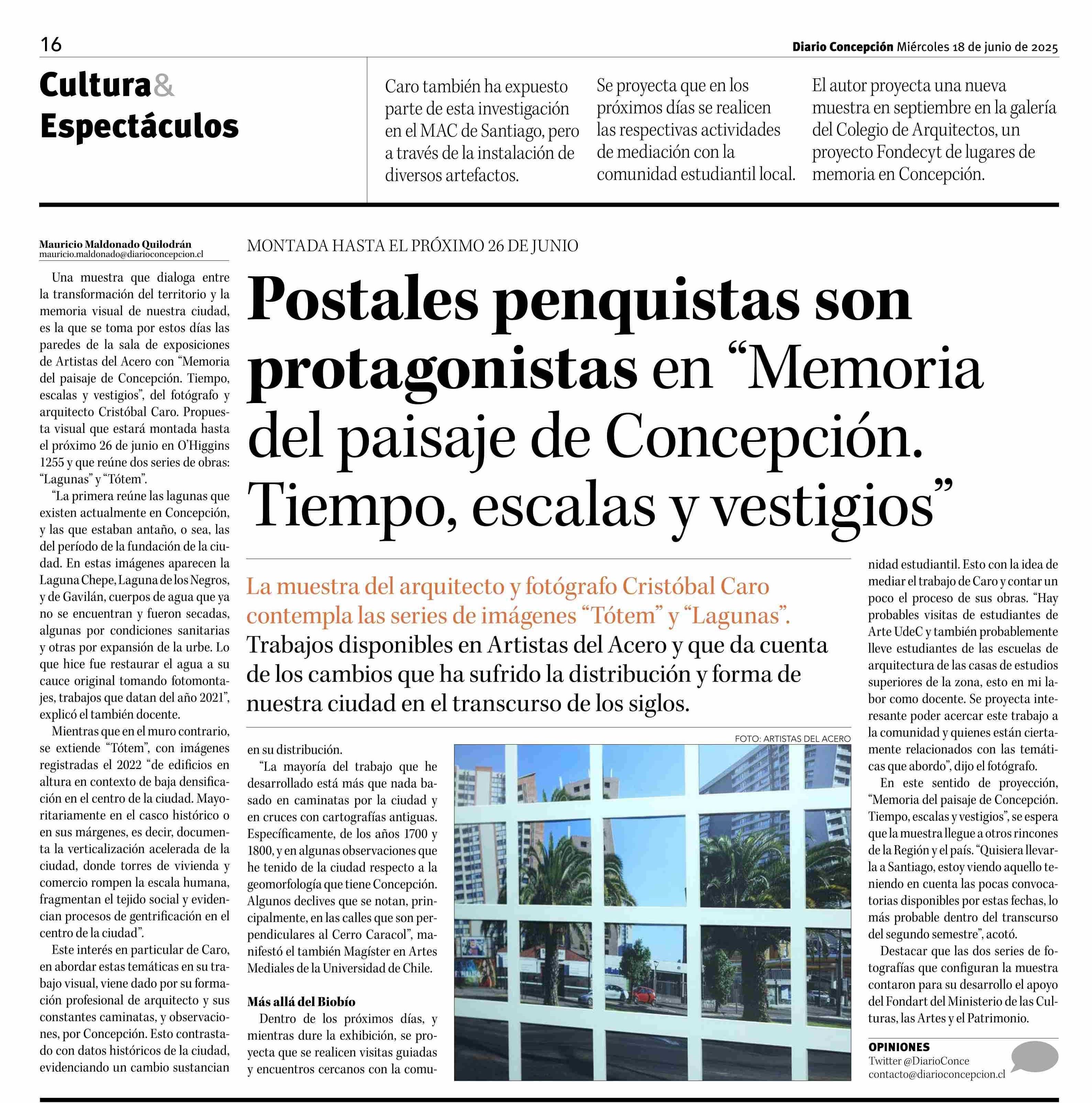Postales penquistas son protagonistas en "Memoria del paisaje de Concepción. Tiempo, escalas y vestigios" 18-06-2025 Diario Concepción |