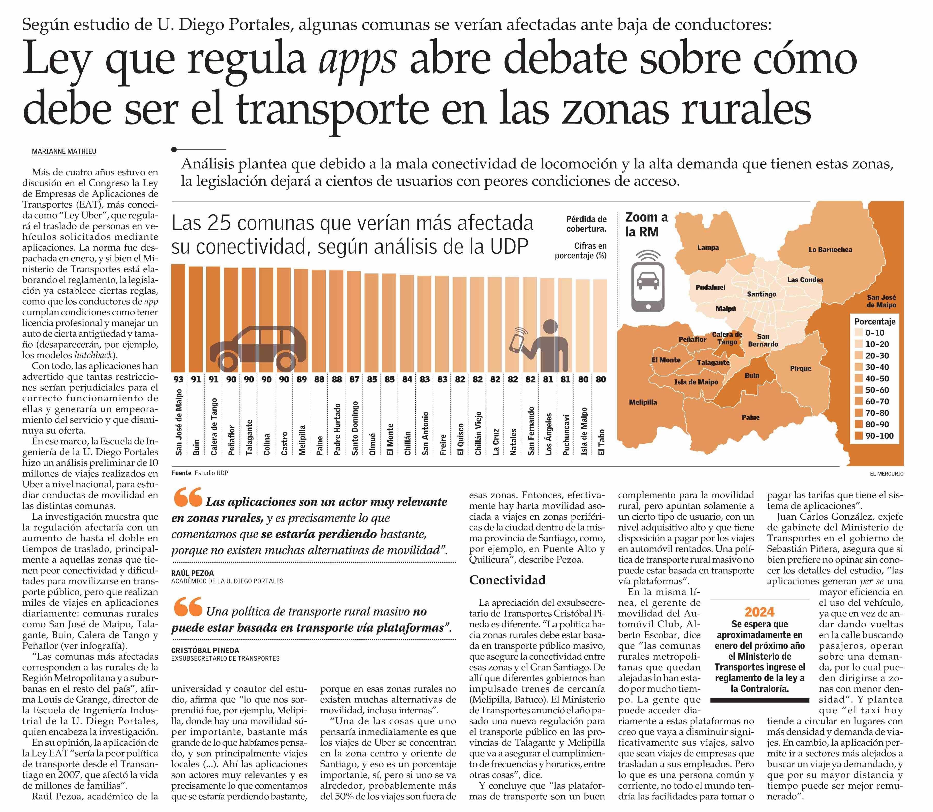 Ley que regula apps abre debate sobre cómo debe ser el transporte en las zonas rurales 12-06-2023 El Mercurio |
