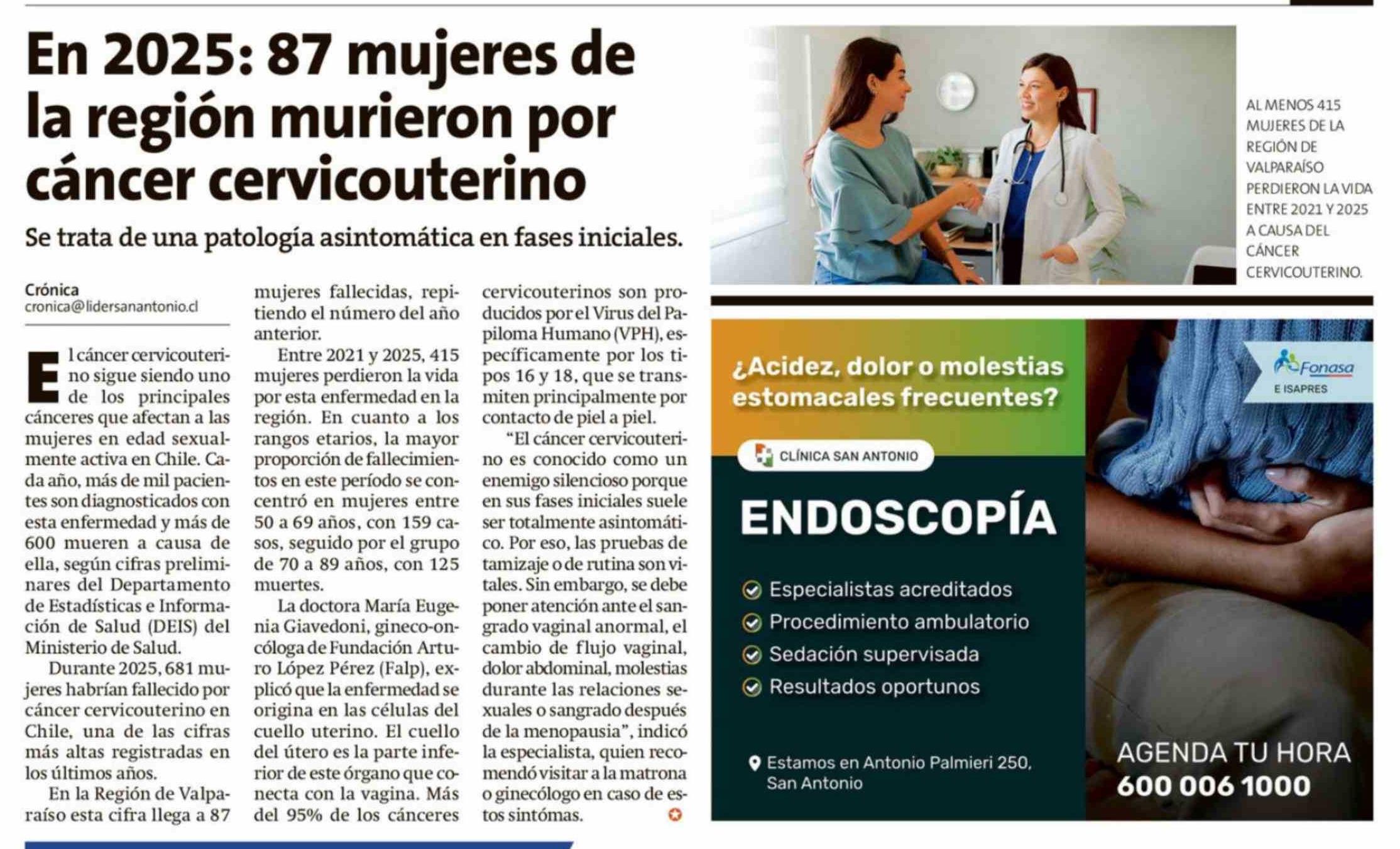 | Título: | En 2025: 87 mujeres de la región murieron por cáncer cervicouterino |