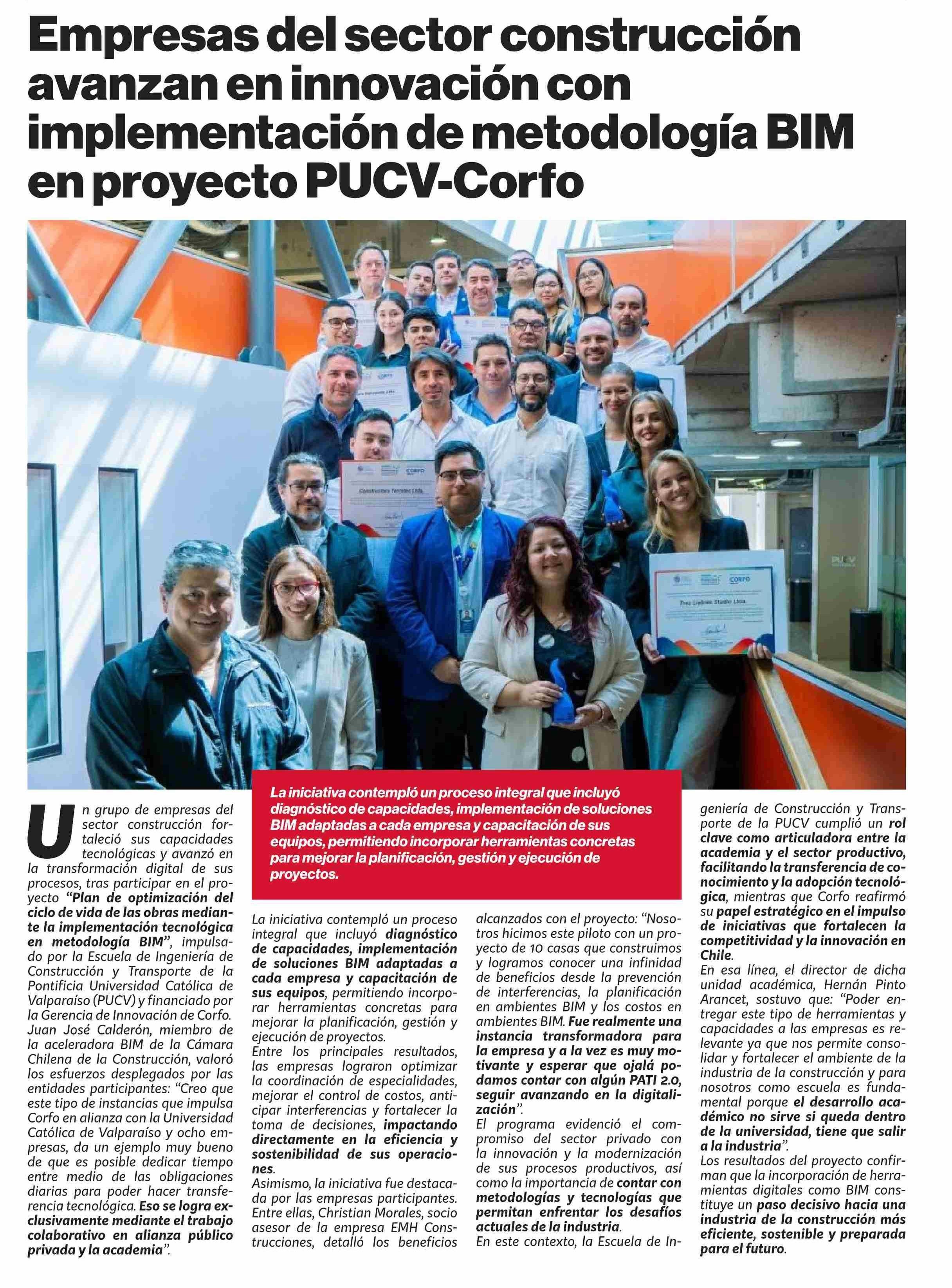 Empresas del sector construcción avanzan en innovación con implementación de metodología BIM en proyecto PUCV-Corfo 23-03-2026 Puranoticia.cl |