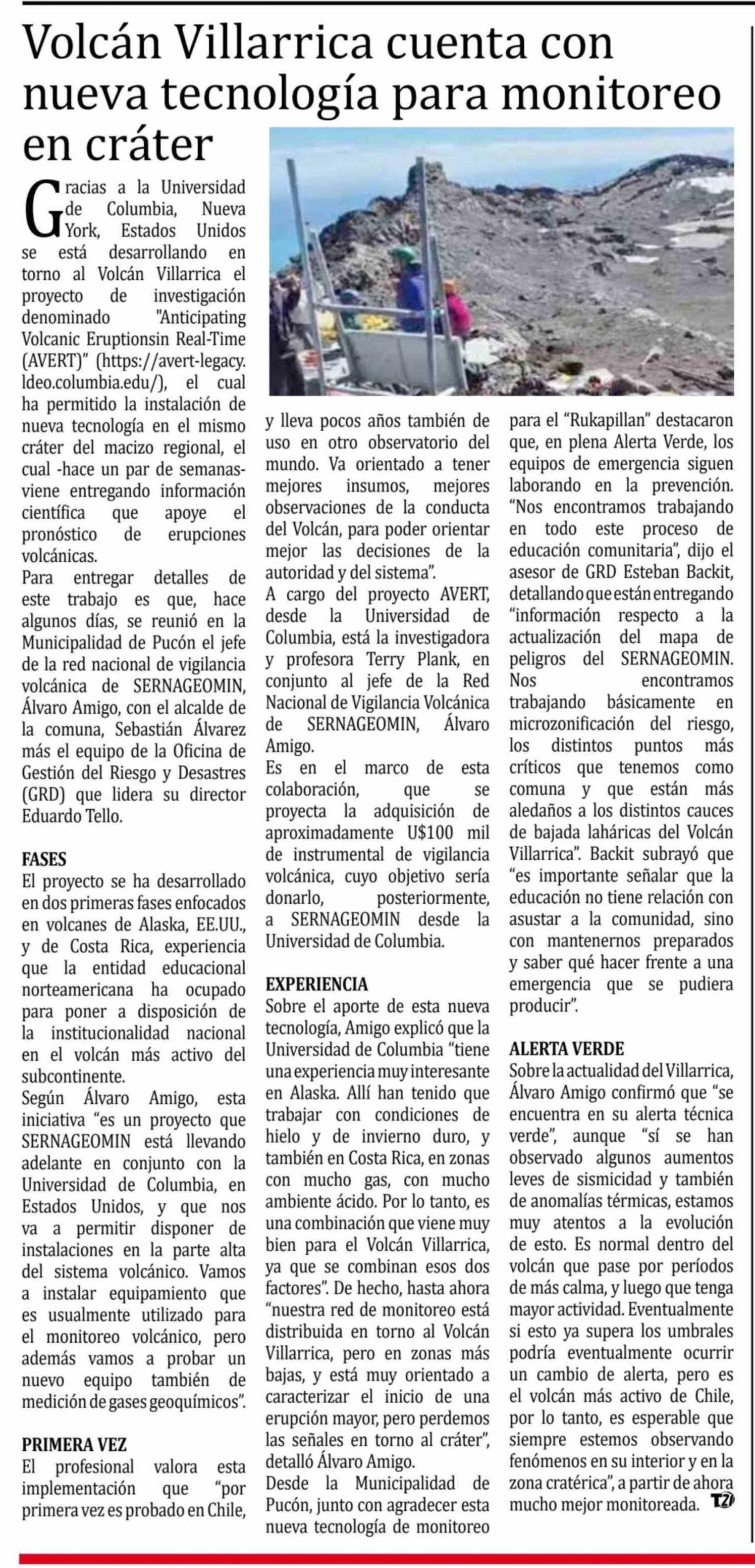 Título: Volcán Villarrica cuenta con nueva tecnología para monitoreo en cráter