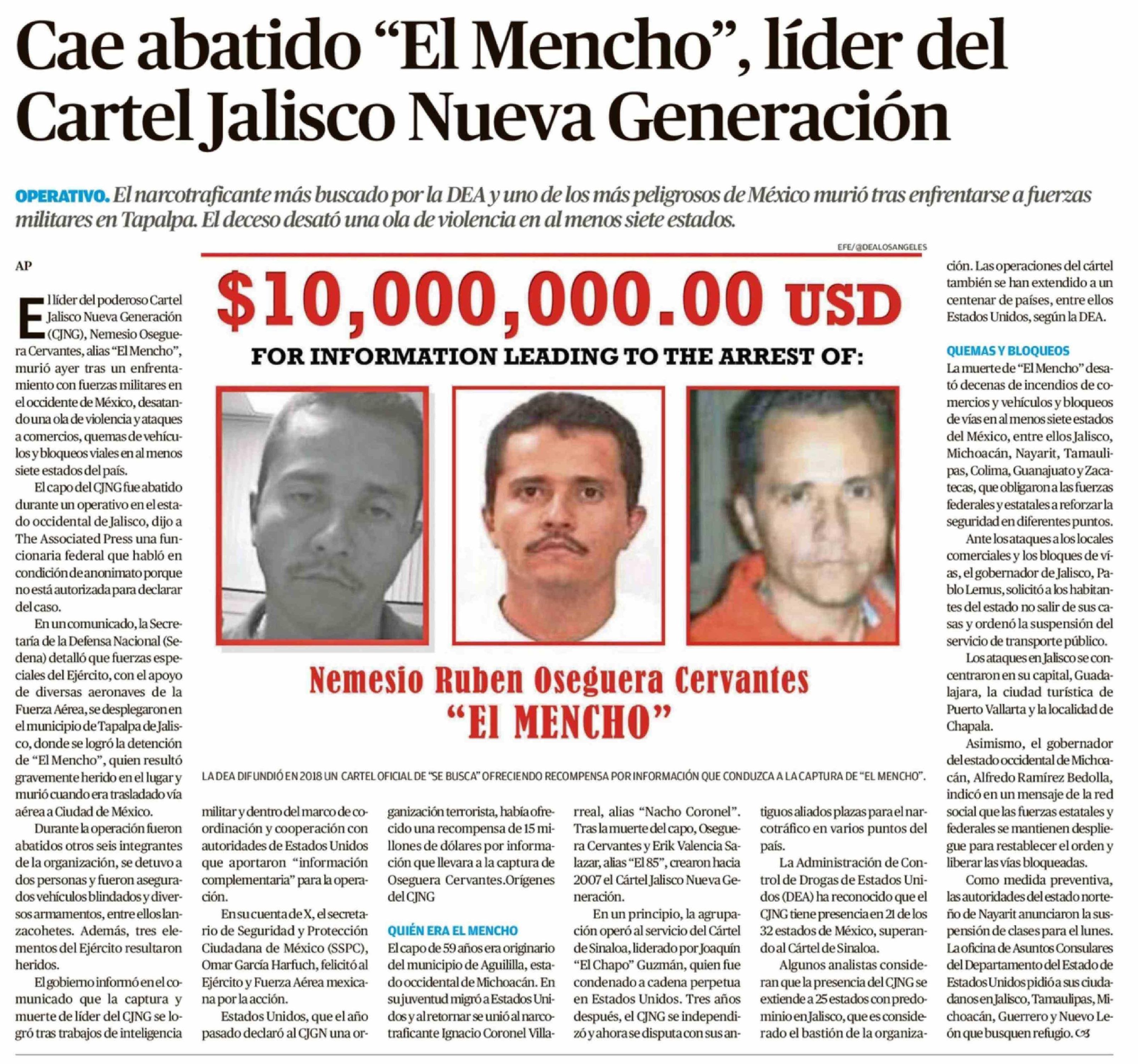 Título: Cae abatido "El Mencho", líder del Cartel Jalisco Nueva Generación