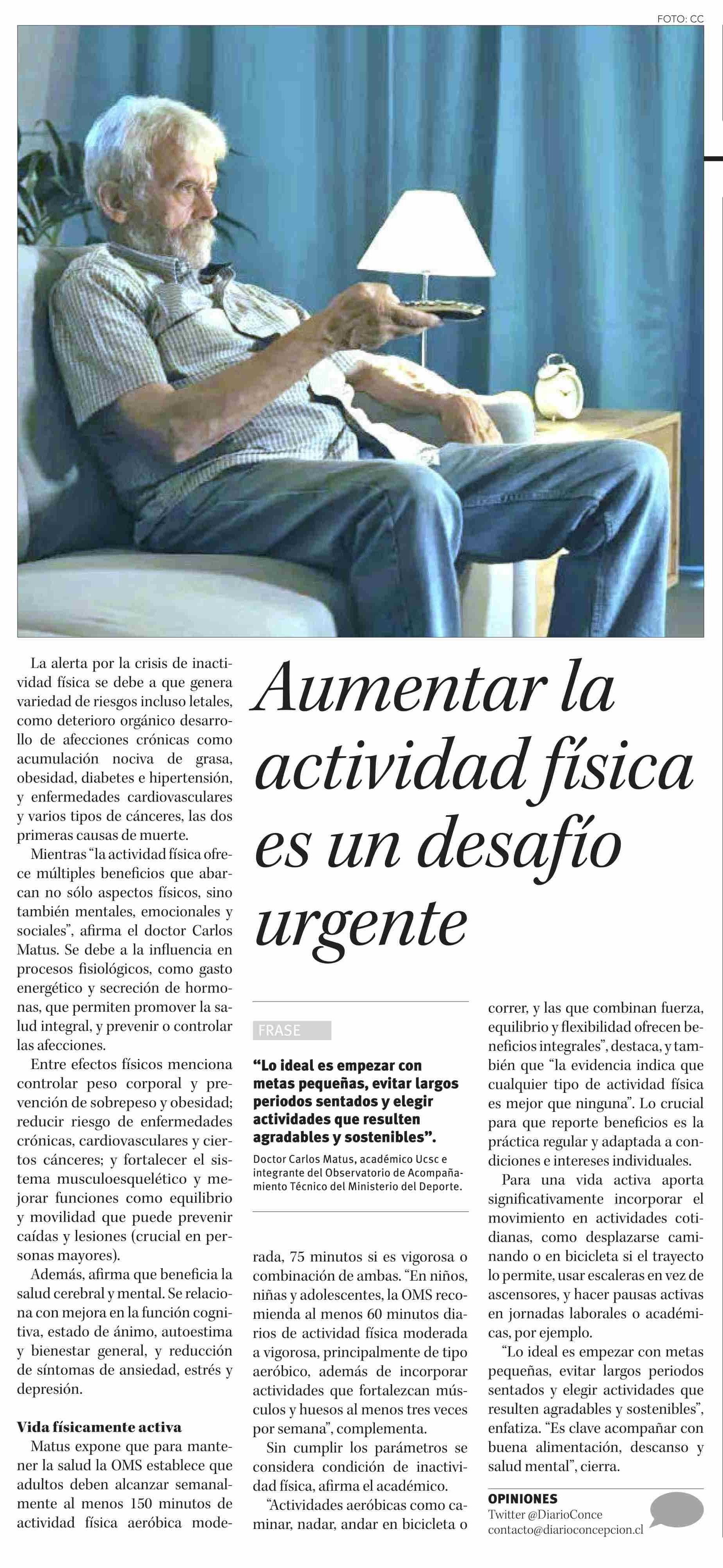 Aumentar la actividad física es un desafío urgente 13-06-2025 Diario Concepción |