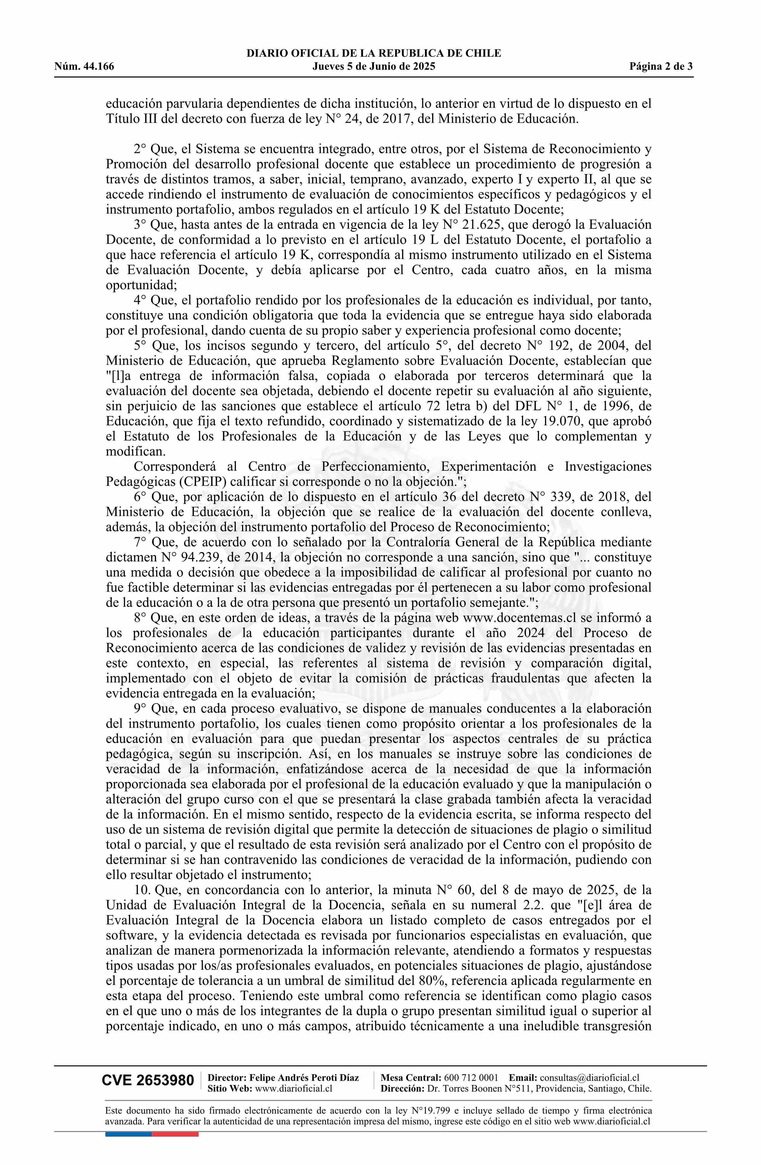 | Título: | Resolución exenta número 7.317, de 2025.- Objeta el instrumento portafolio conforme al artículo 36 del decreto N° 339, de 2018, respecto de los profesionales de la educación que indica |
