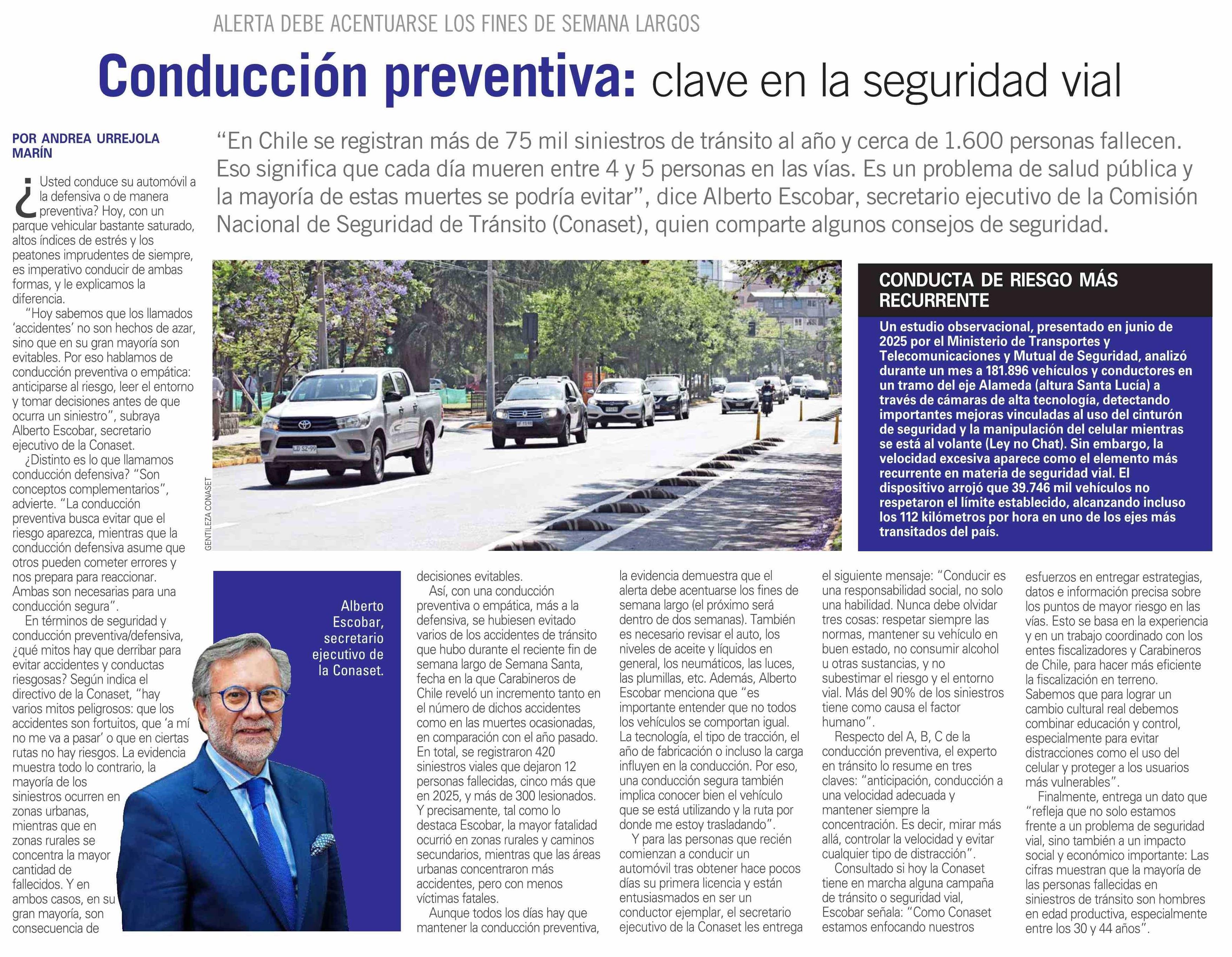 Conducción preventiva: clave en la seguridad vial 18-04-2026 El Mercurio |