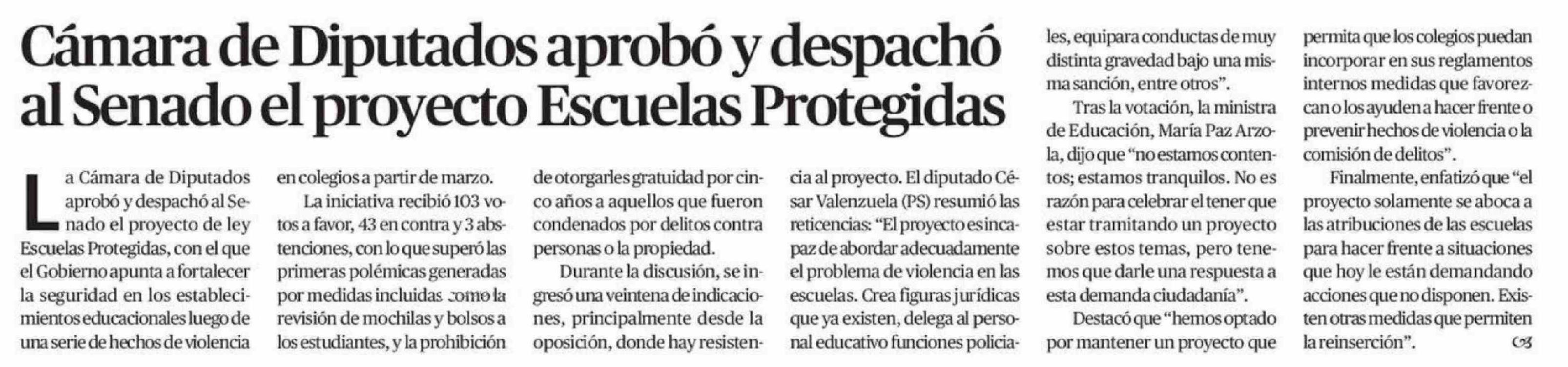 Título: Cámara de Diputados aprobó y despacho al Senado el proyecto Escuelas Protegidas