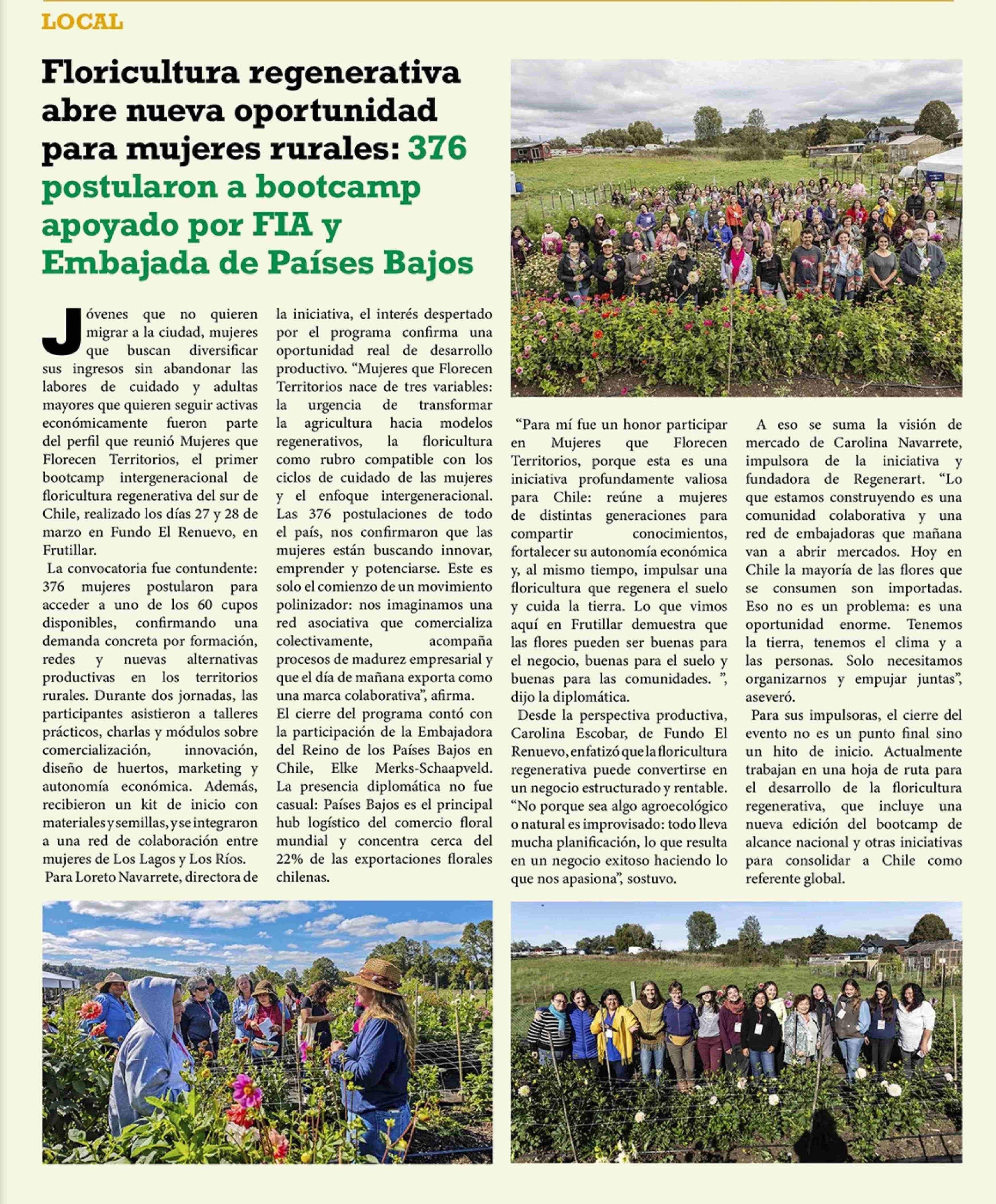 Floricultura regenerativa abre nueva oportunidad para mujeres rurales: 376 postularon a bootcamp apoyado por FIA y Embajada de Países Bajos 31-03-2026 El Heraldo Austral |