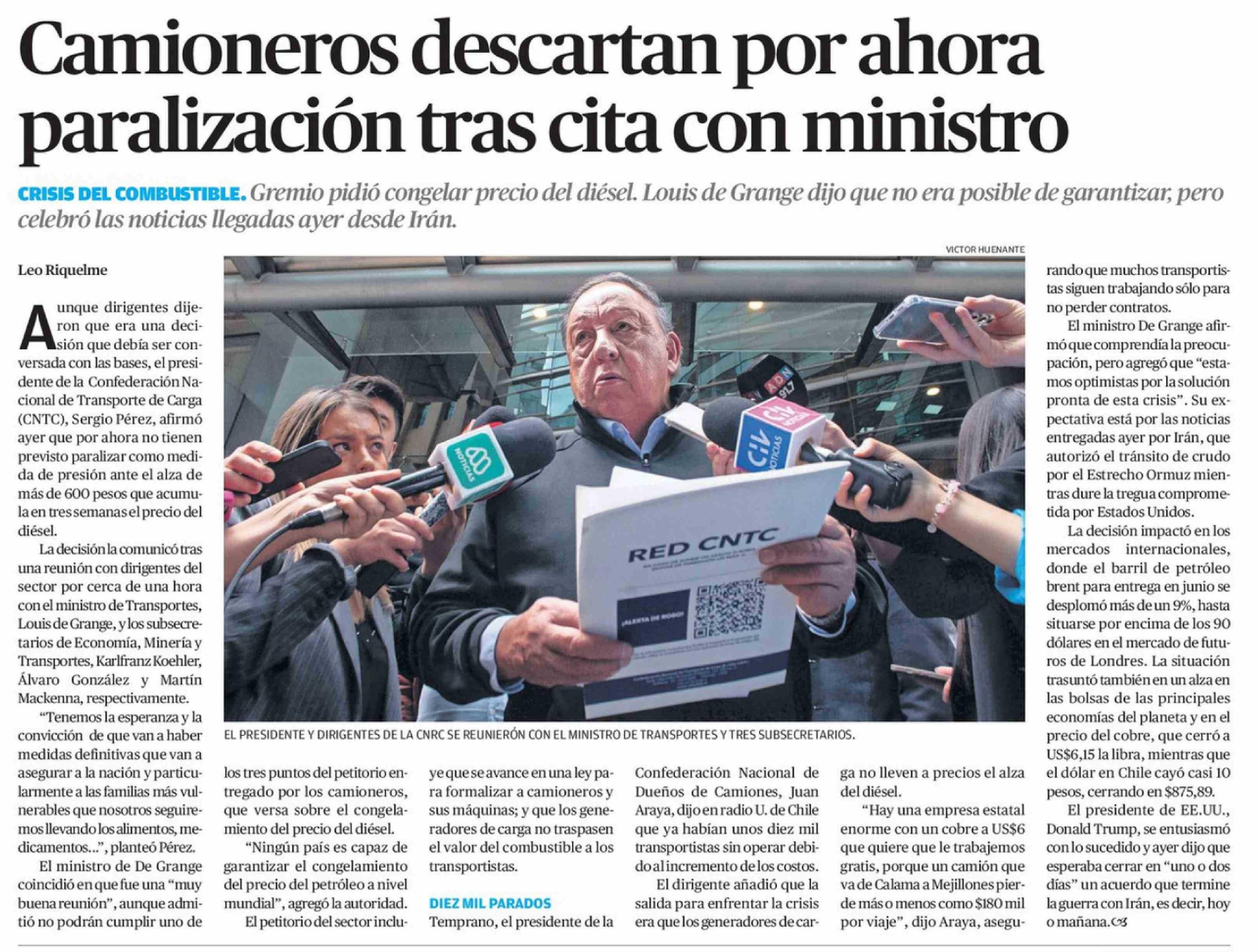 Título: Camioneros descartan por ahora paralización tras cita con ministro