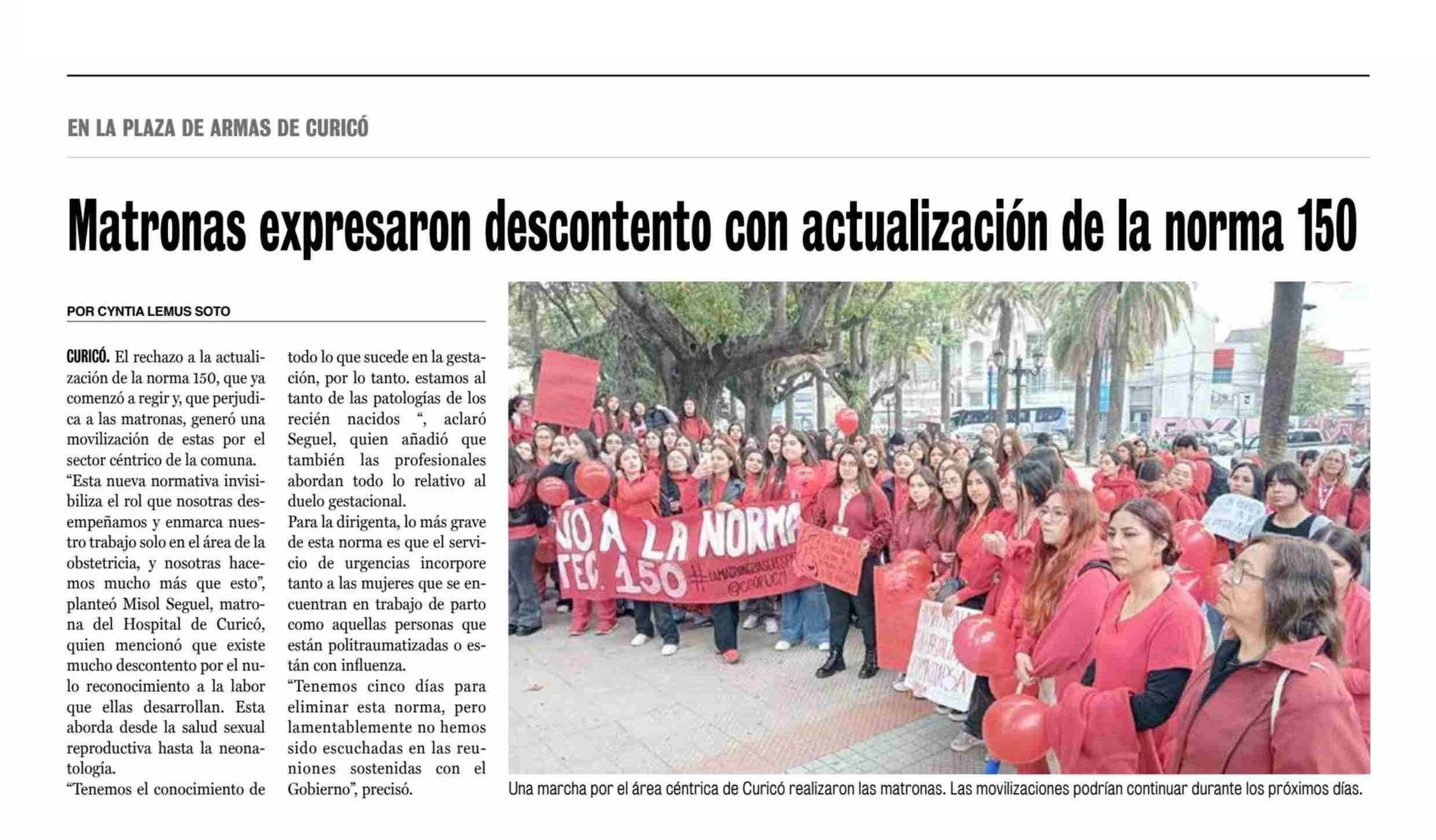 Matronas expresaron descontento con actualización de la norma 150 24-05-2025 La Prensa de Curicó |