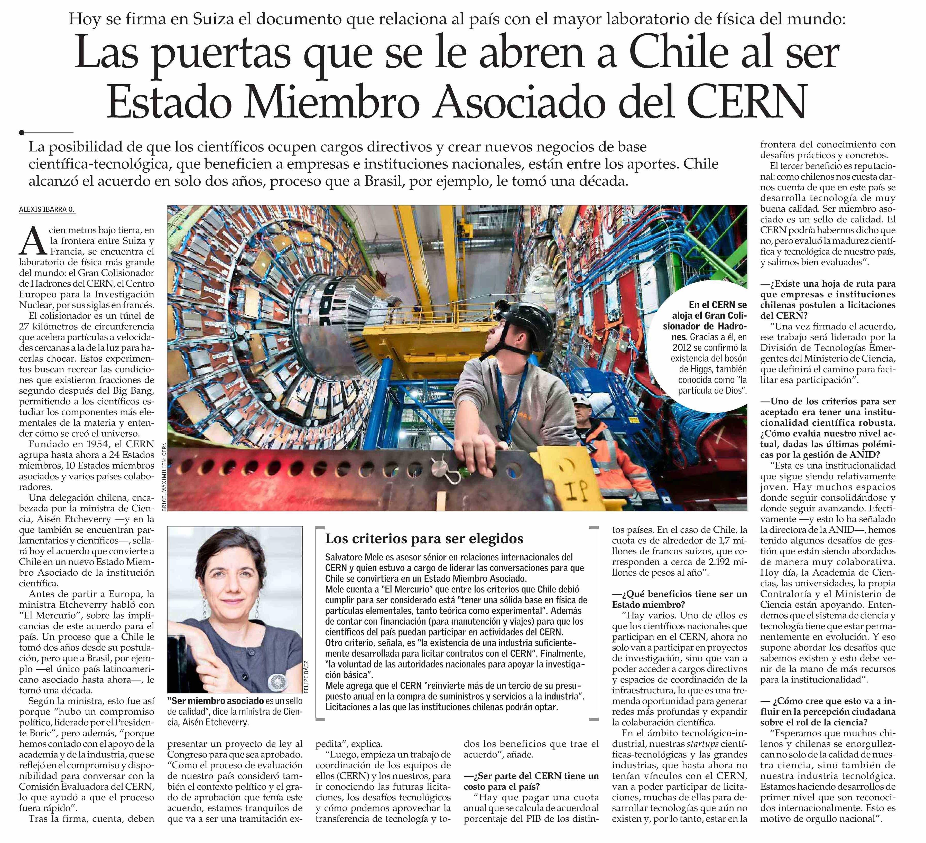 Las puertas que se le abren a Chile al ser Estado Miembro Asociado del CERN 16-05-2025 El Mercurio |