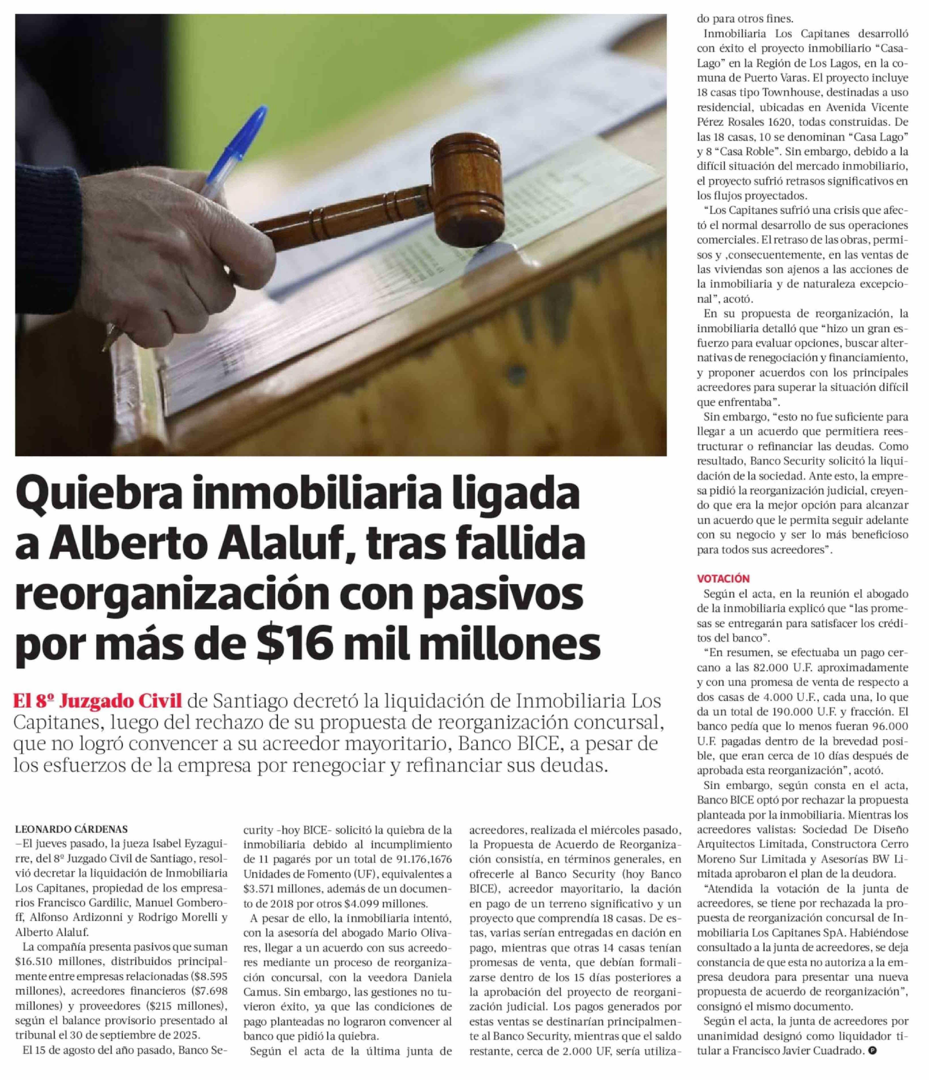 | Título: | Quiebra inmobiliaria ligada a Alberto Alaluf, tras fallida reorganización con pasivos por más de $16 mil millones |