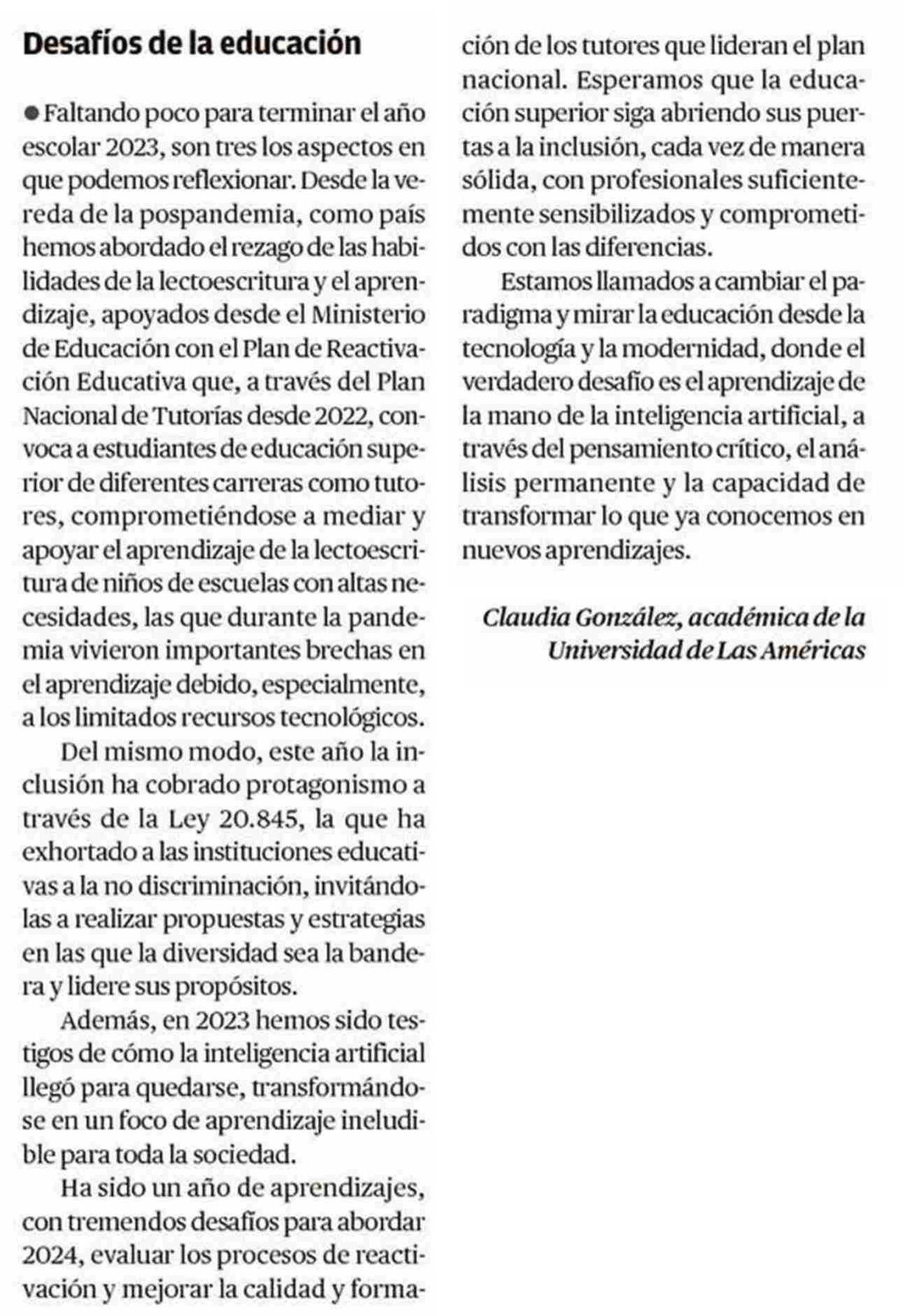Desafíos de la educación 01-12-2023 El Llanquihue |