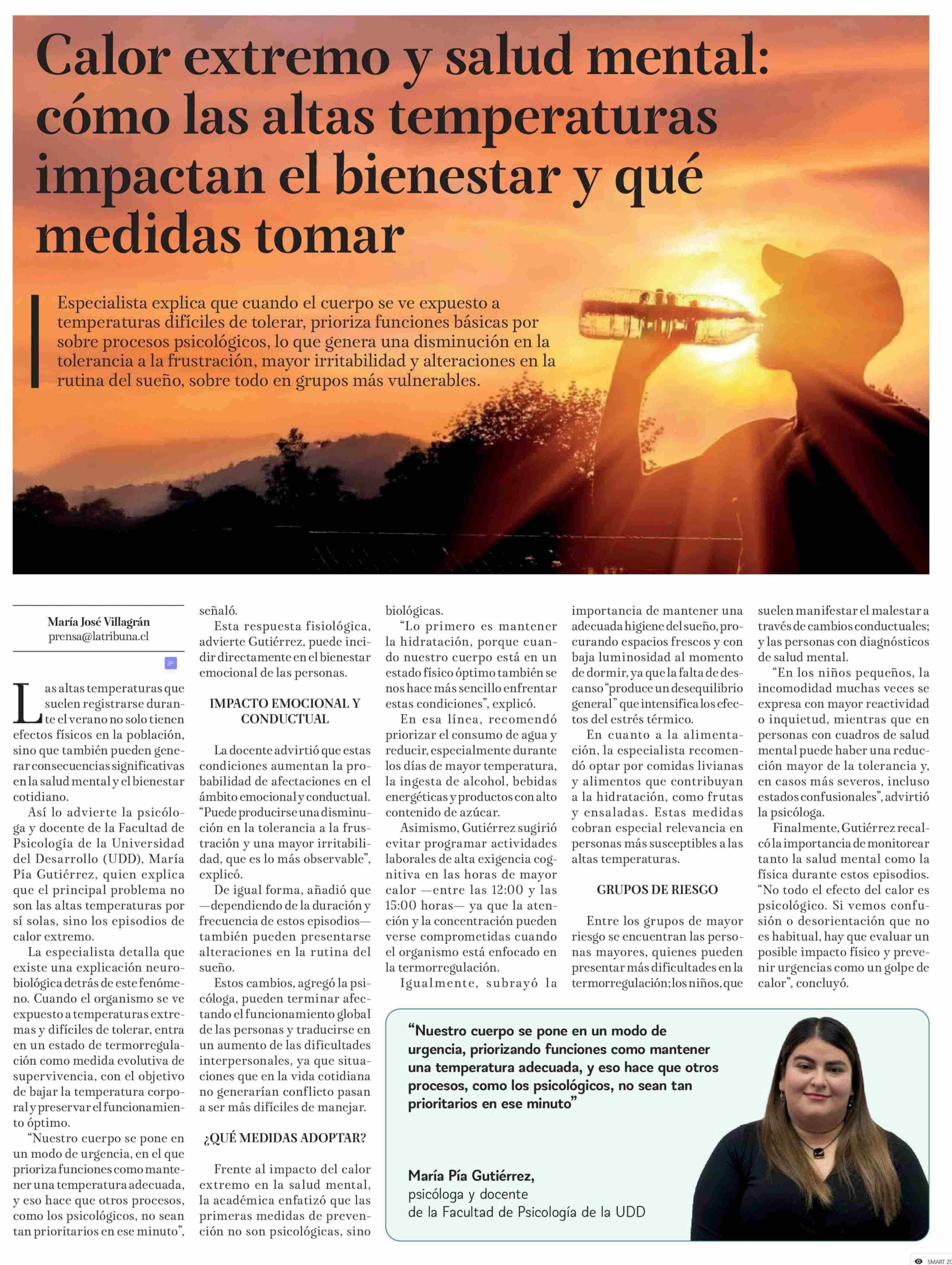 Calor extremo y salud mental: cómo las altas temperaturas impactan el bienestar y qué medidas tomar 26-01-2026 La Tribuna |
