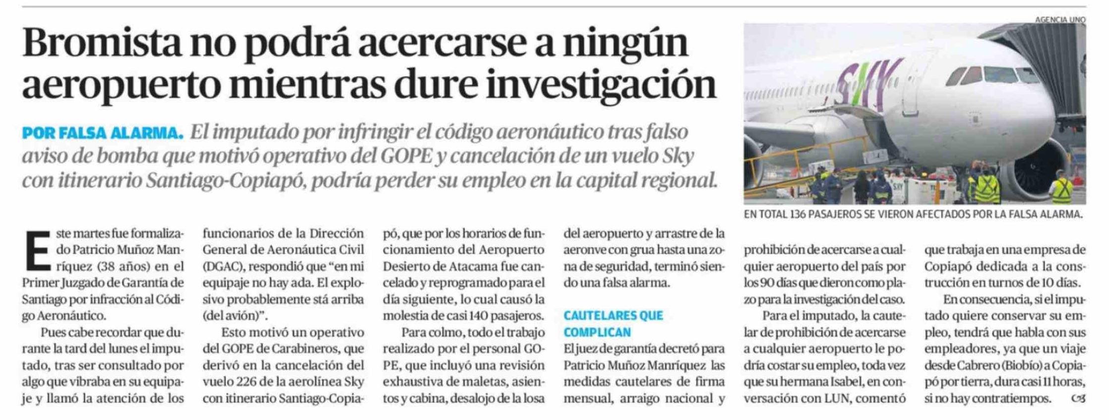 Título: Bromista no podrá acercarse a ningún aeropuerto mientras dure investigación