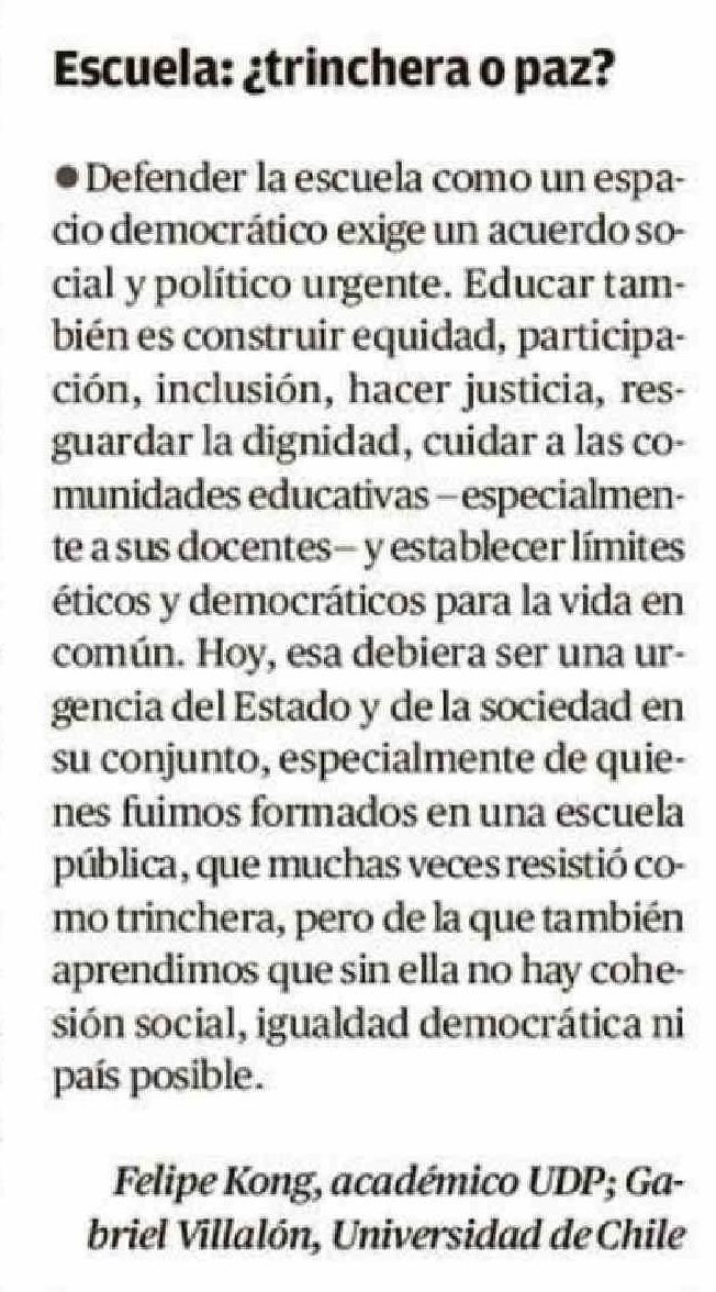Cartas: Escuela: ¿ trinchera o paz? 23-04-2026 El Austral de Osorno |