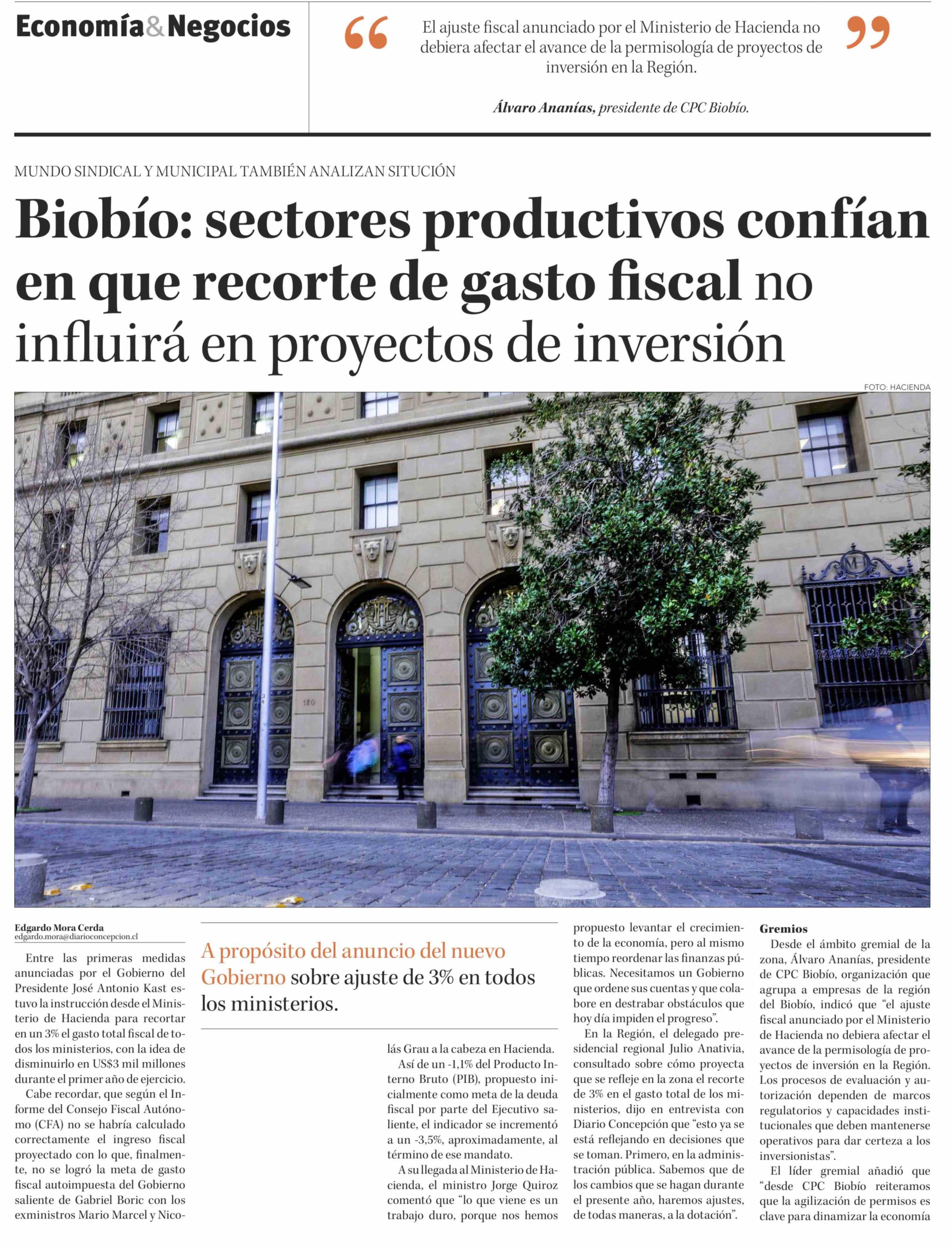 Título: Biobío: sectores productivos confían en que recorte de gasto fiscal no influirá en proyectos de inversión