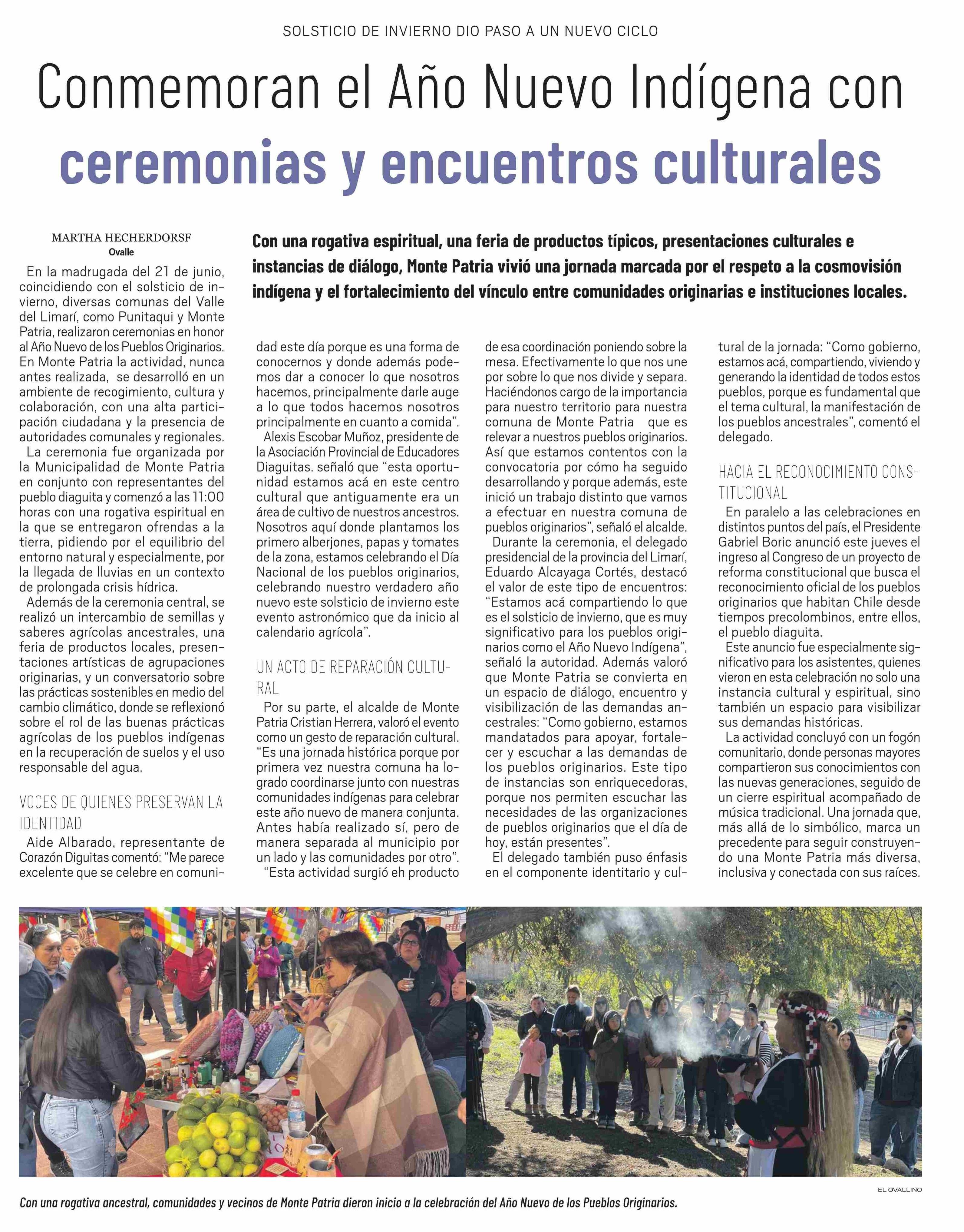 Conmemoran el Año Nuevo Indígena con ceremonias y encuentros culturales 22-06-2025 El Ovallino |