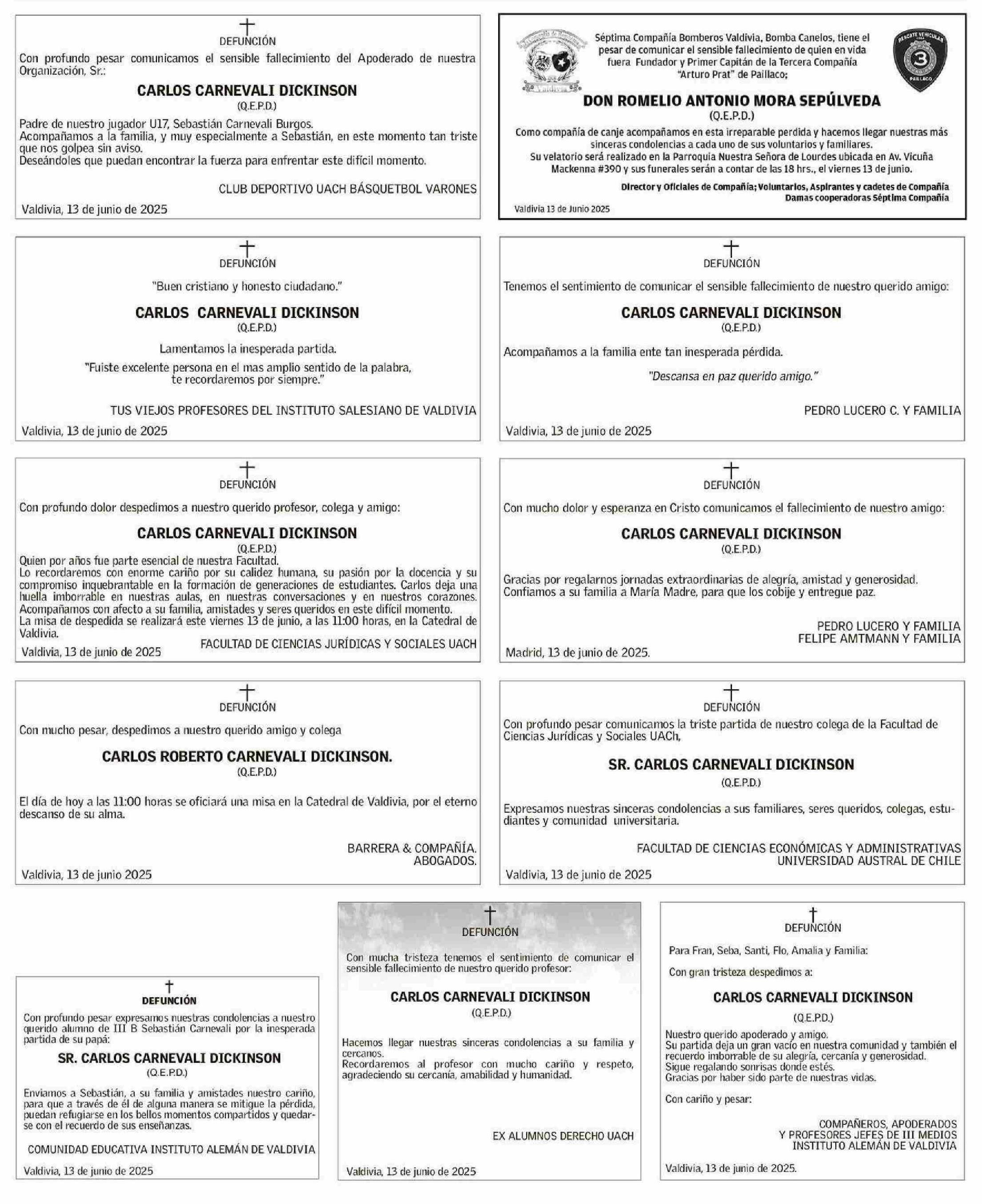 Obituario: OBITUARIO 13-06-2025 Diario Austral Región de Los Ríos |
