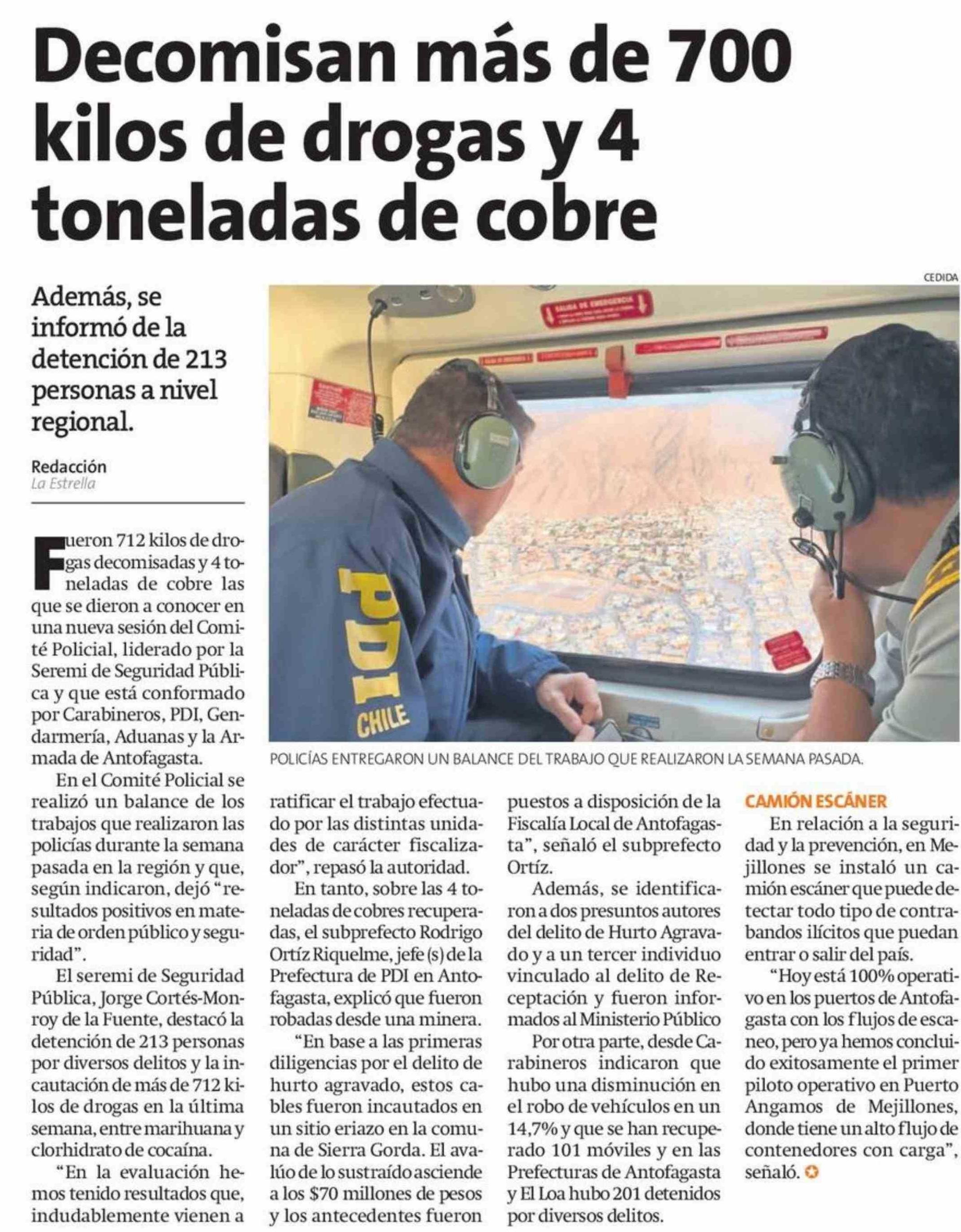 Decomisan más de 700 kilos de drogas y 4 toneladas de cobre 03-02-2026 La Estrella de Antofagasta |