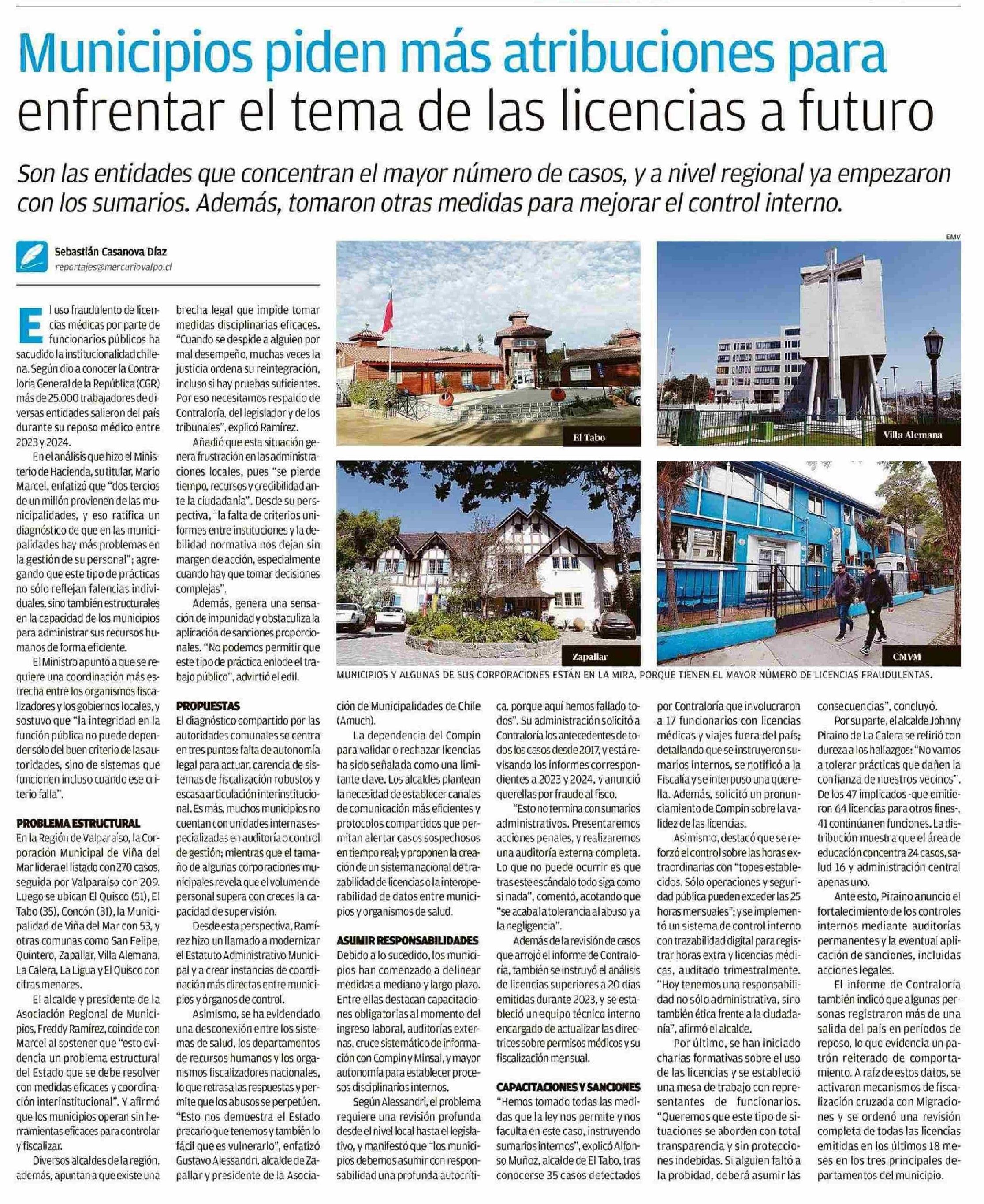 Municipios piden más atribuciones para enfrentar el tema de las licencias a futuro 01-06-2025 El Mercurio de Valparaíso |