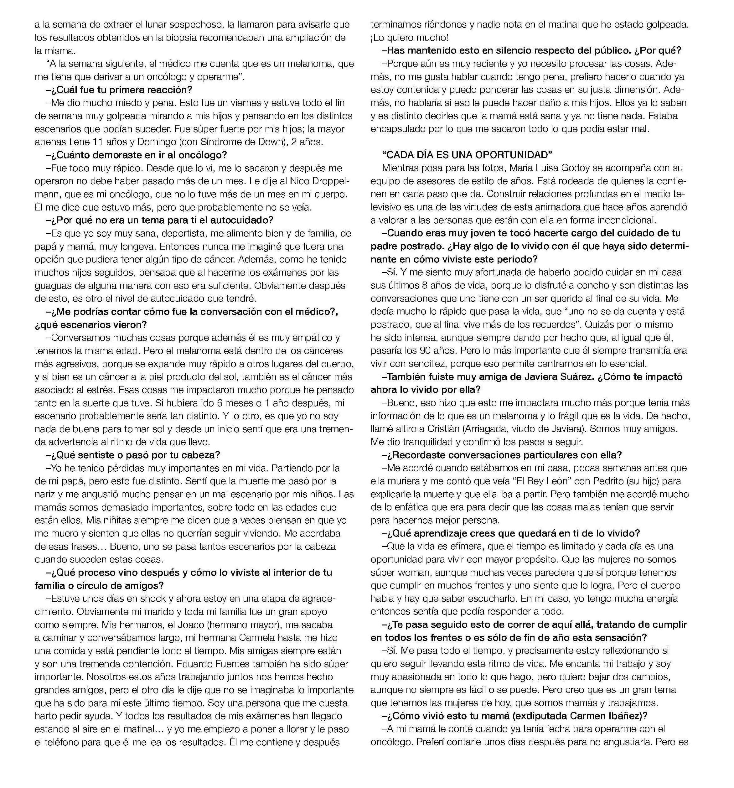 MARÍA LUISA GODOY “Sentí que la muerte me pasó por la nariz" 08-01-2025 Revista Velvet |