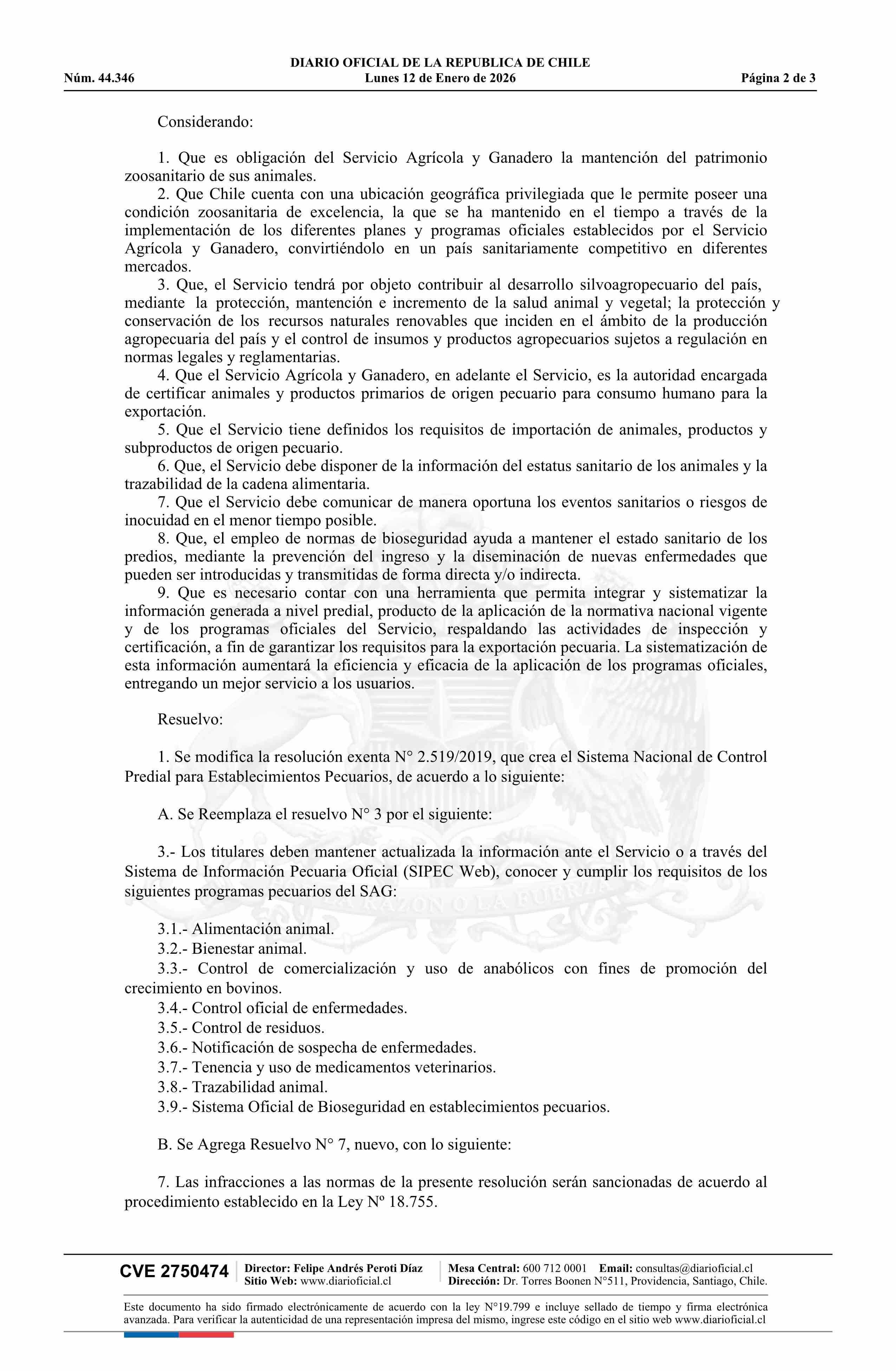 Resolución exenta número 11.136, de 2025.- Modifica resolución exenta N° 2.519/2019 que crea el Sistema Nacional de Control Predial para Establecimientos Pecuarios