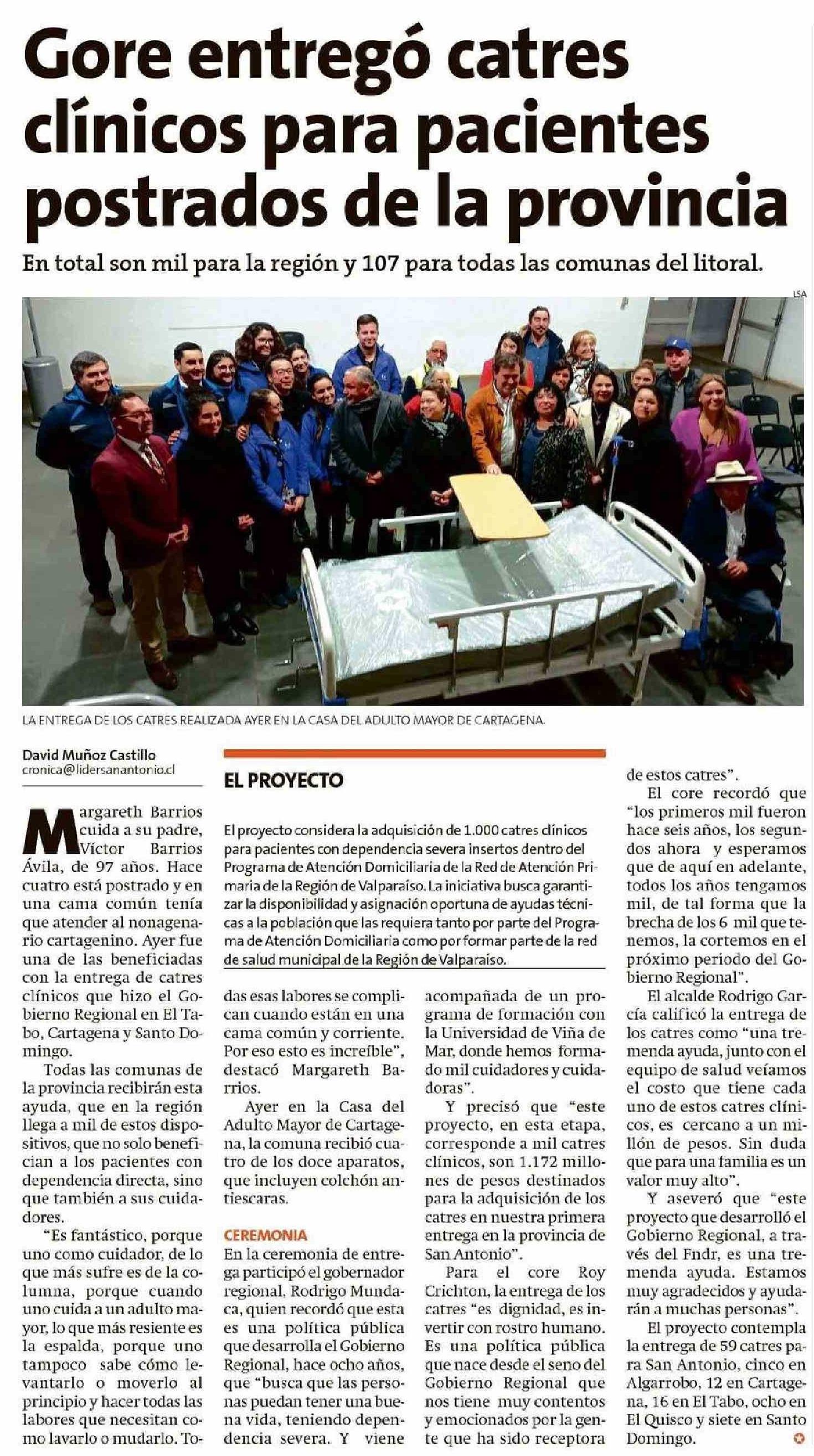 Core entregó catres clinicos para pacientes postrados de la provincia 31-07-2024 El Líder |