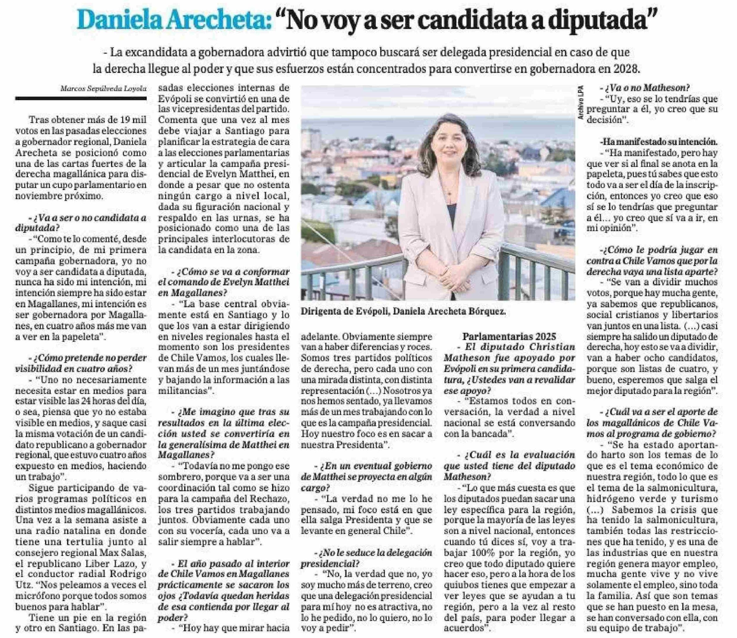 Daniela Arecheta: “No voy a ser candidata a diputada” 08-06-2025 El Magallanes |