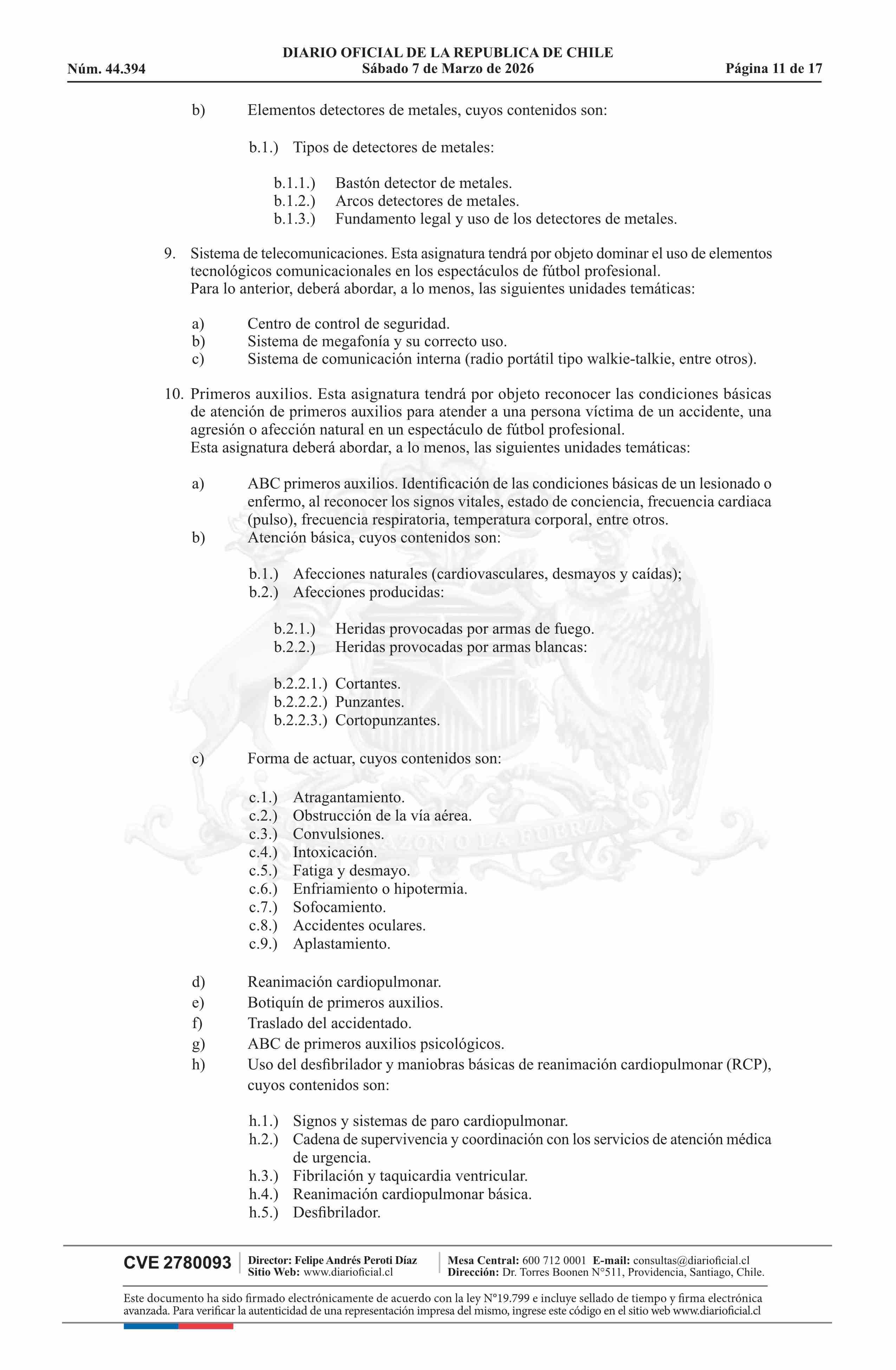 Título: Resolución exenta número 830, de 2026.- Aprueba instrucciones generales sobre capacitación especializada en seguridad privada aplicables a los guardias de seguridad en los espectáculos de fútbol profesional