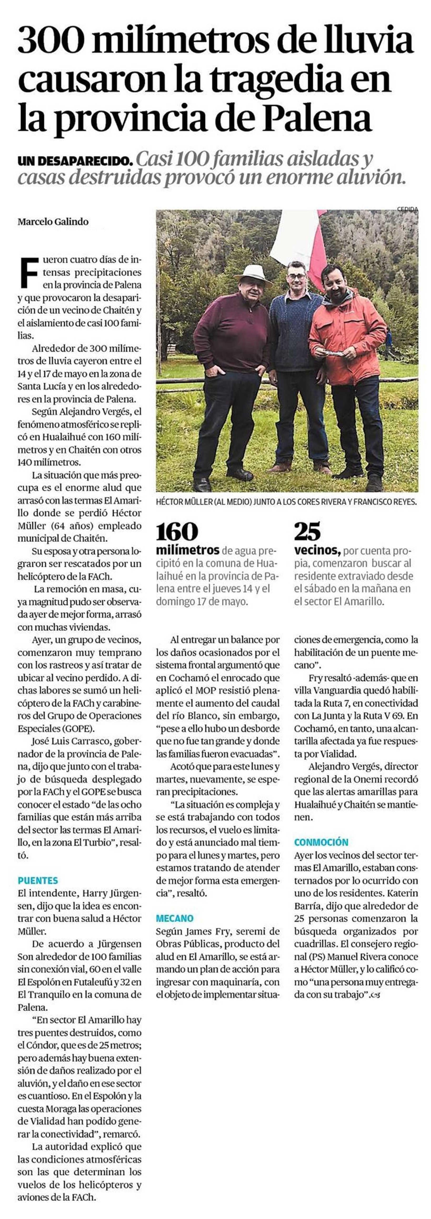 300 milímetros de lluvia causaron la en la provincia de Palena 18-05-2020 El Llanquihue |