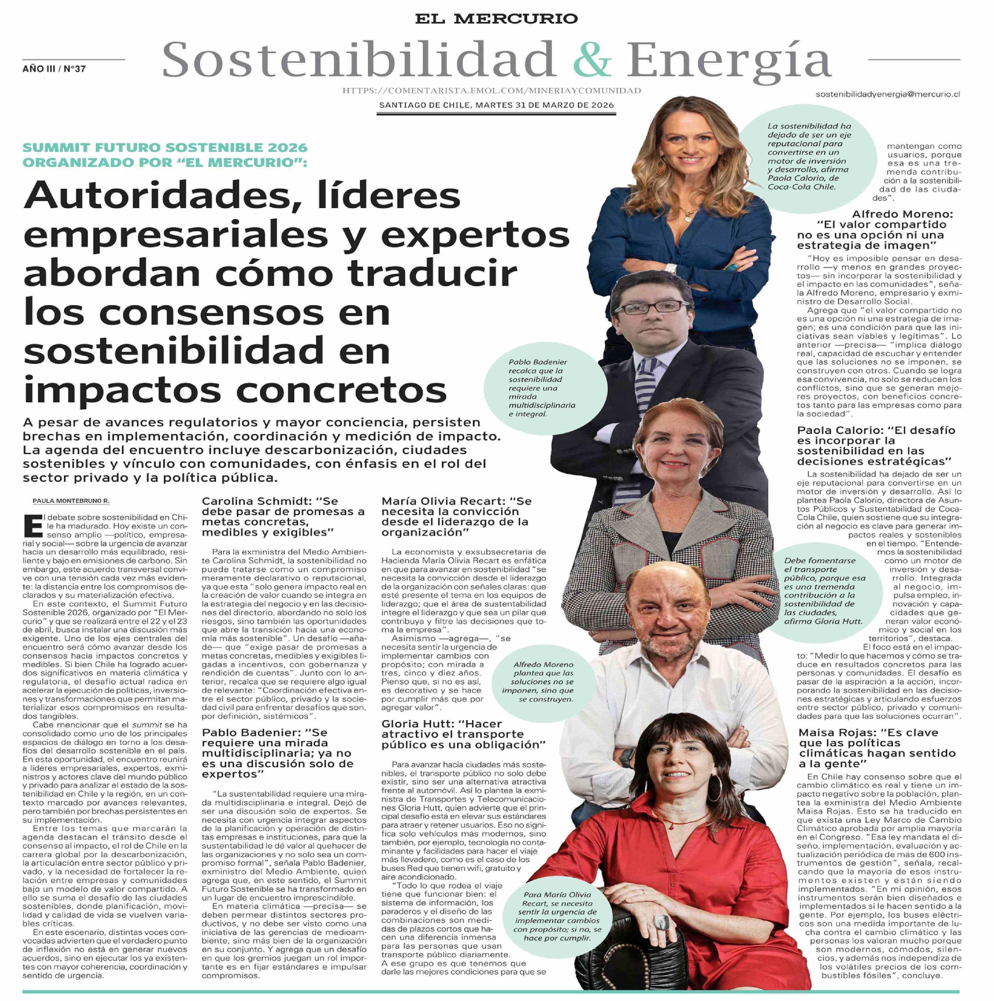Fuente: El Mercurio (El Mercurio - Energía & Sustentabilidad) Página(s): 1