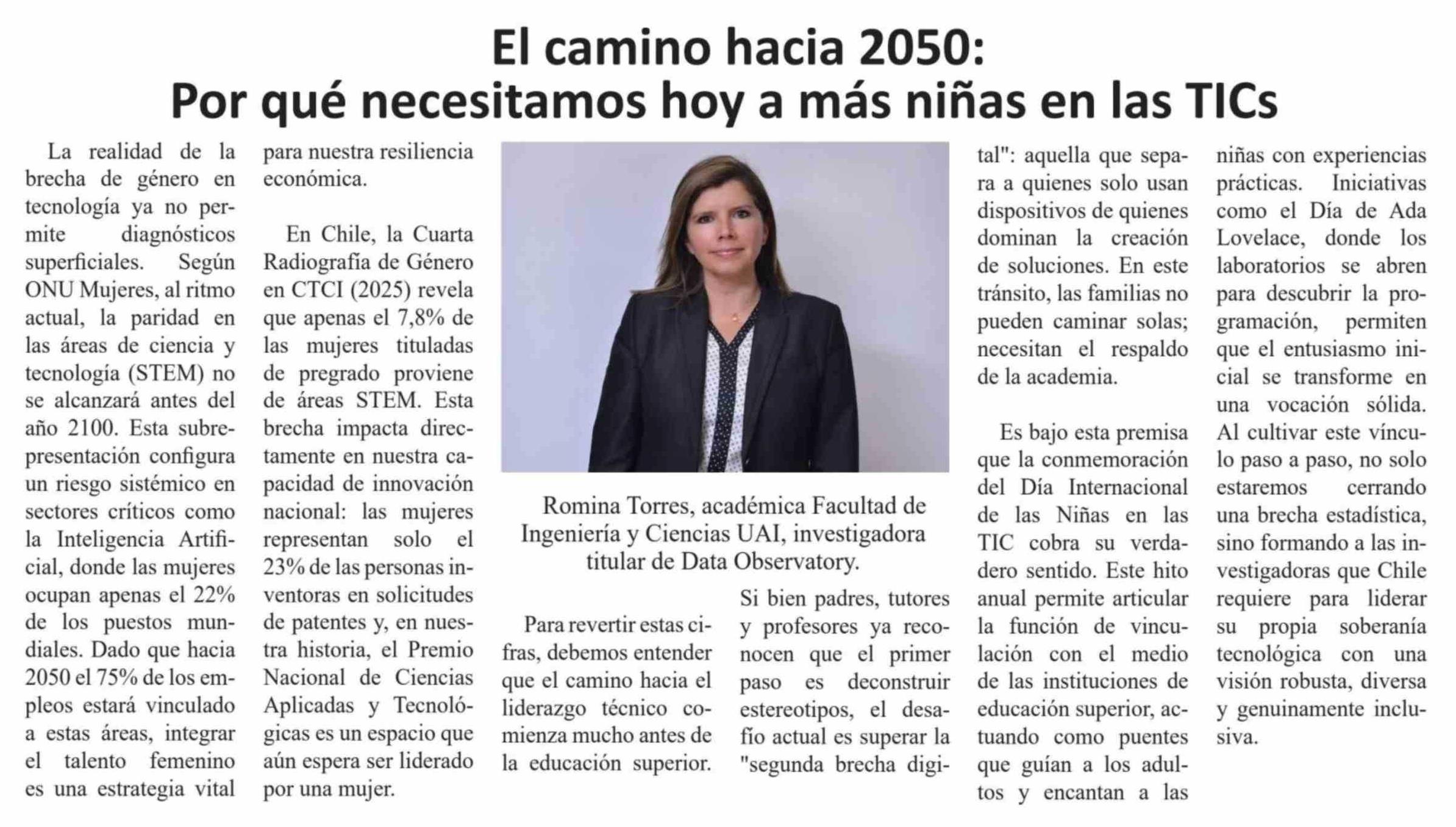 Columnas de Opinión: El camino hacia 2050: Por qué necesitamos hoy a más niñas en las TICs 24-04-2026 El Heraldo |