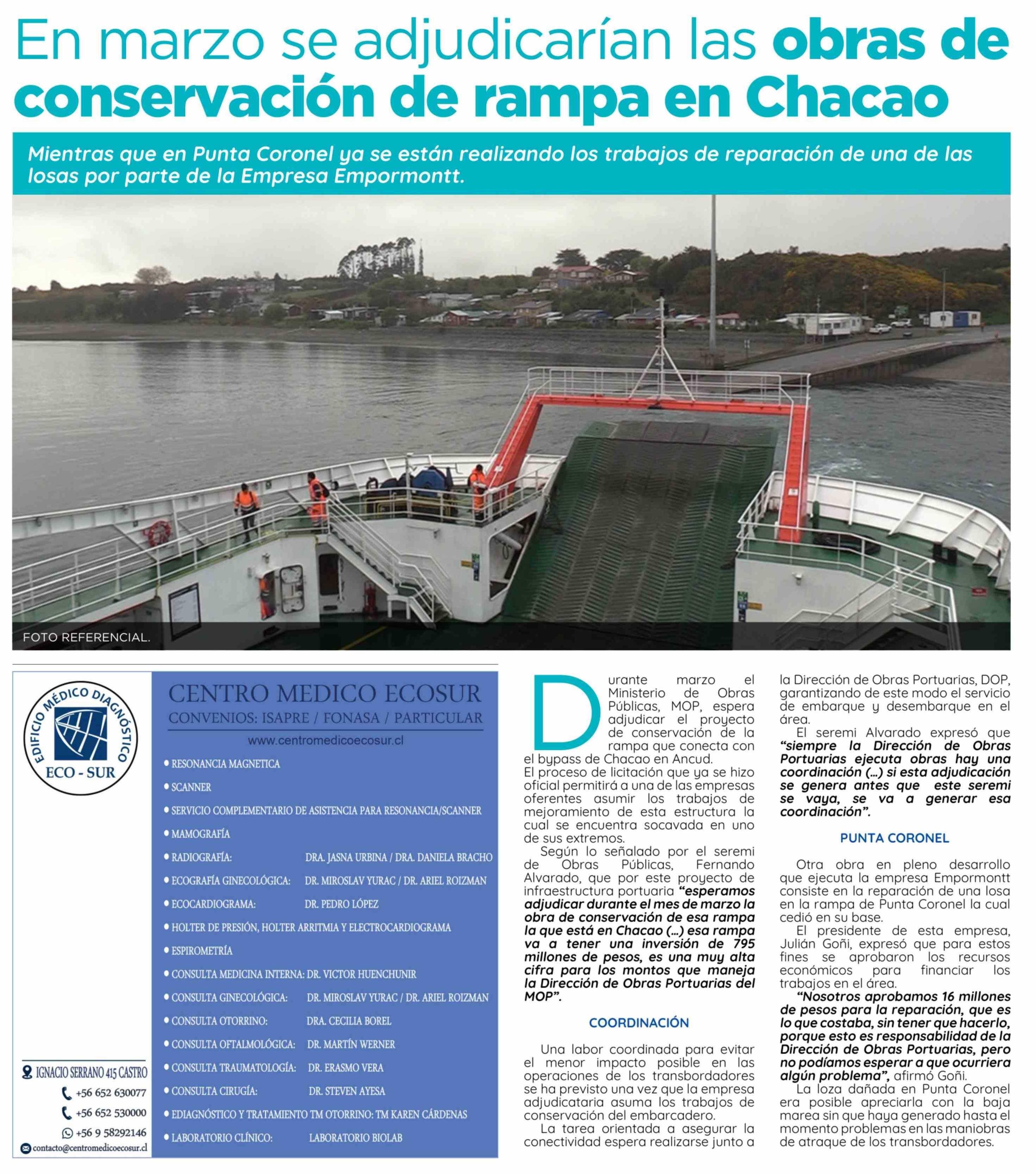 Título: En marzo se adjudicarían las obras de conservación de rampa en Chacao