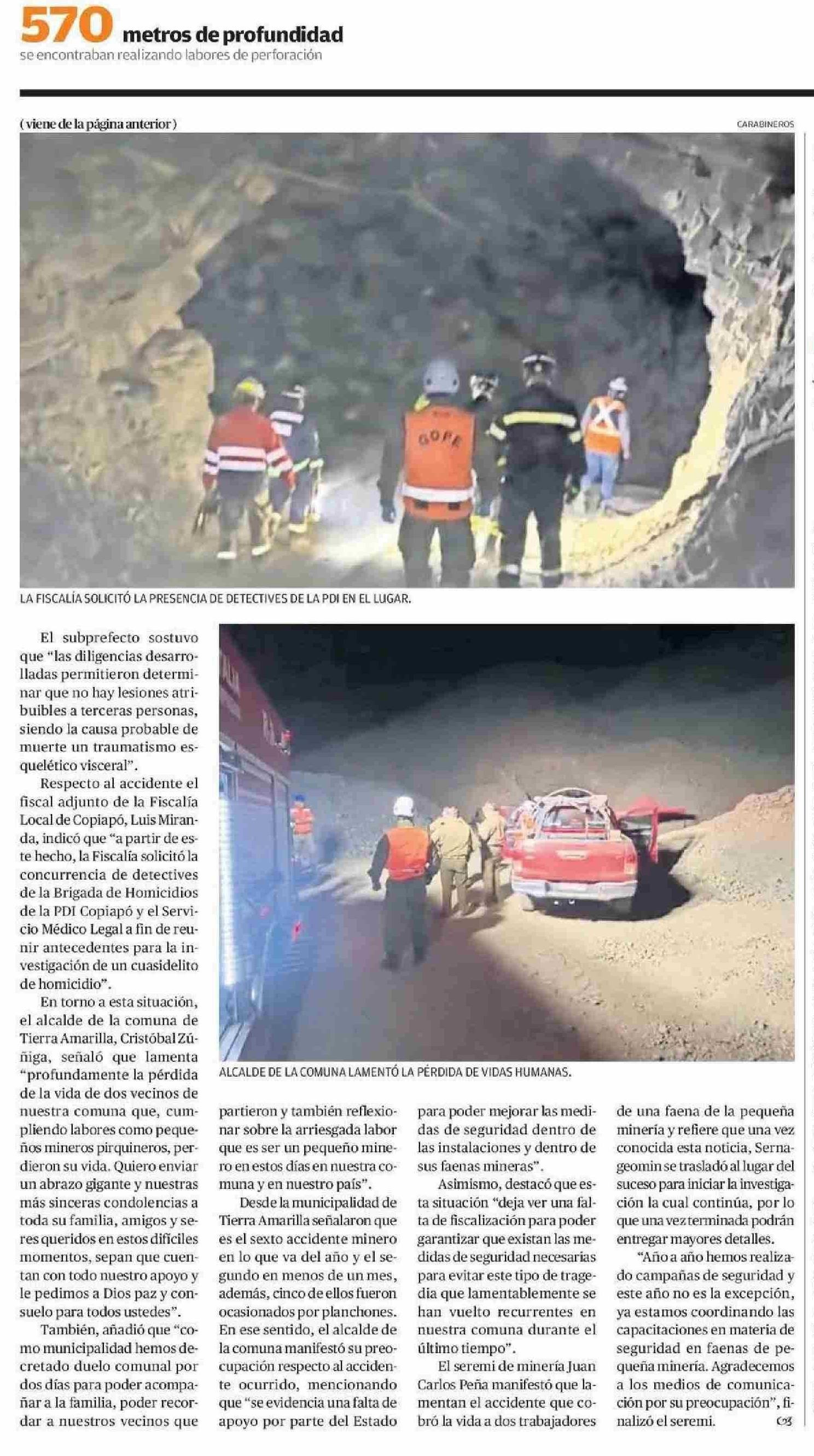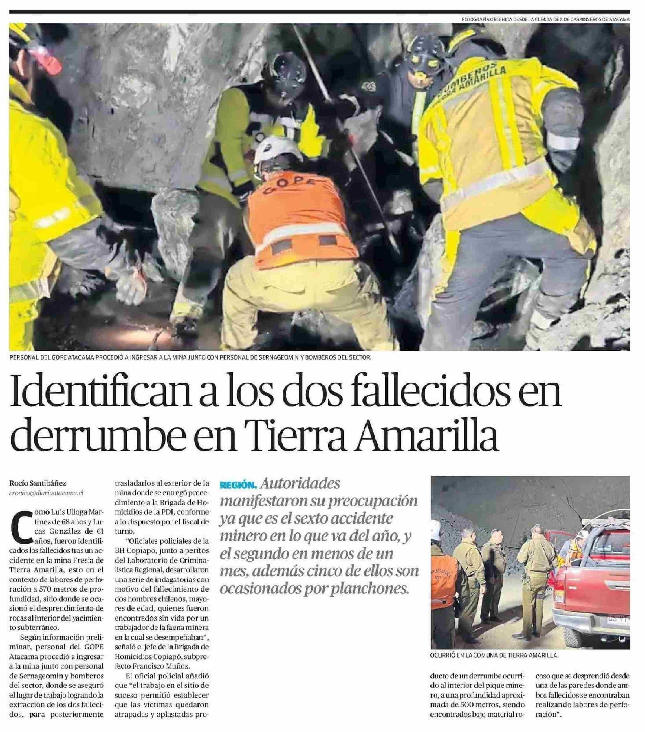 Identifican a los dos fallecidos en derrumbe en Tierra Amarilla 06-06-2025 El Diario de Atacama |