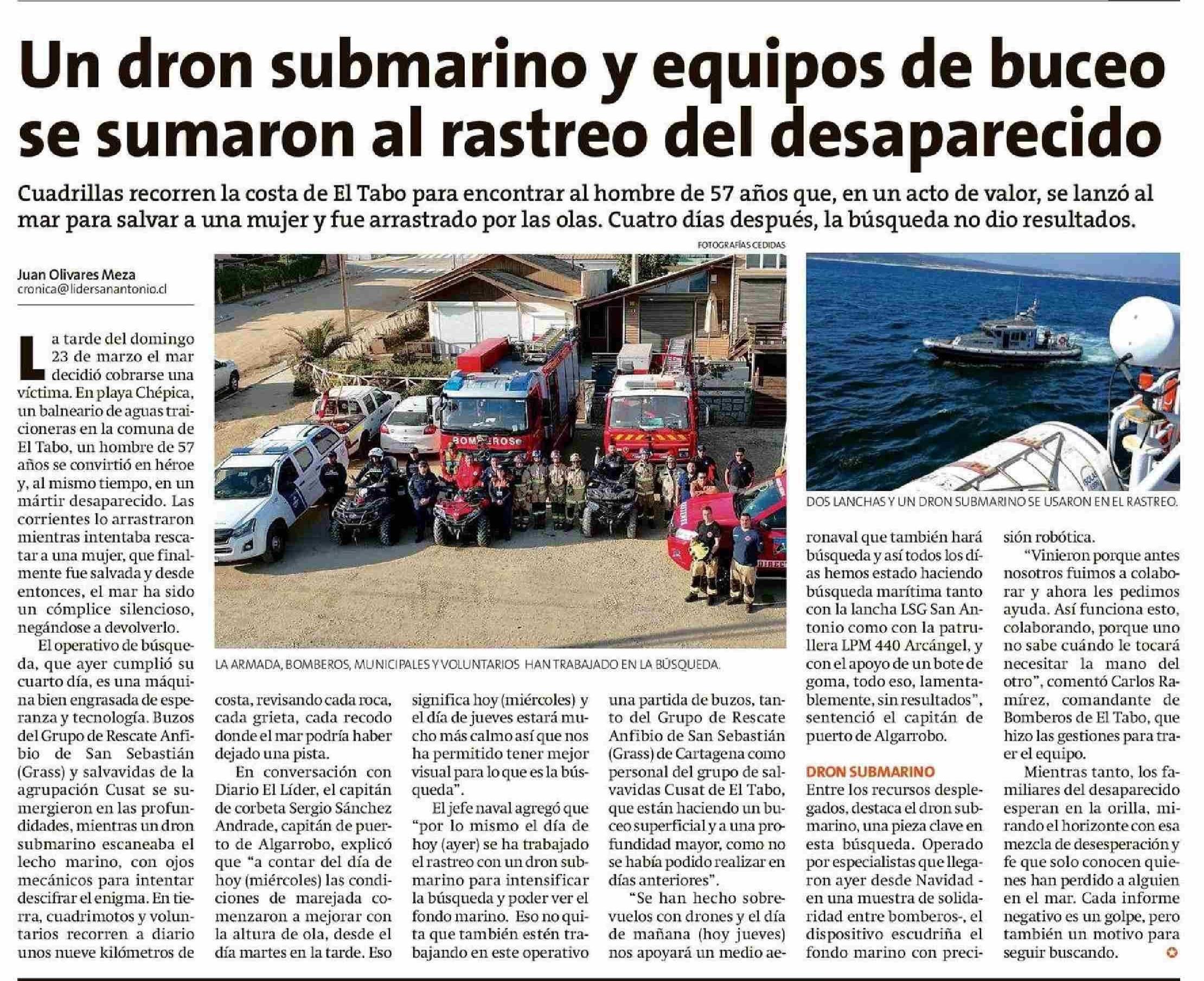 Un dron submarino y equipos de buceo se sumaron al rastreo del desaparecido 27-03-2025 El Líder |