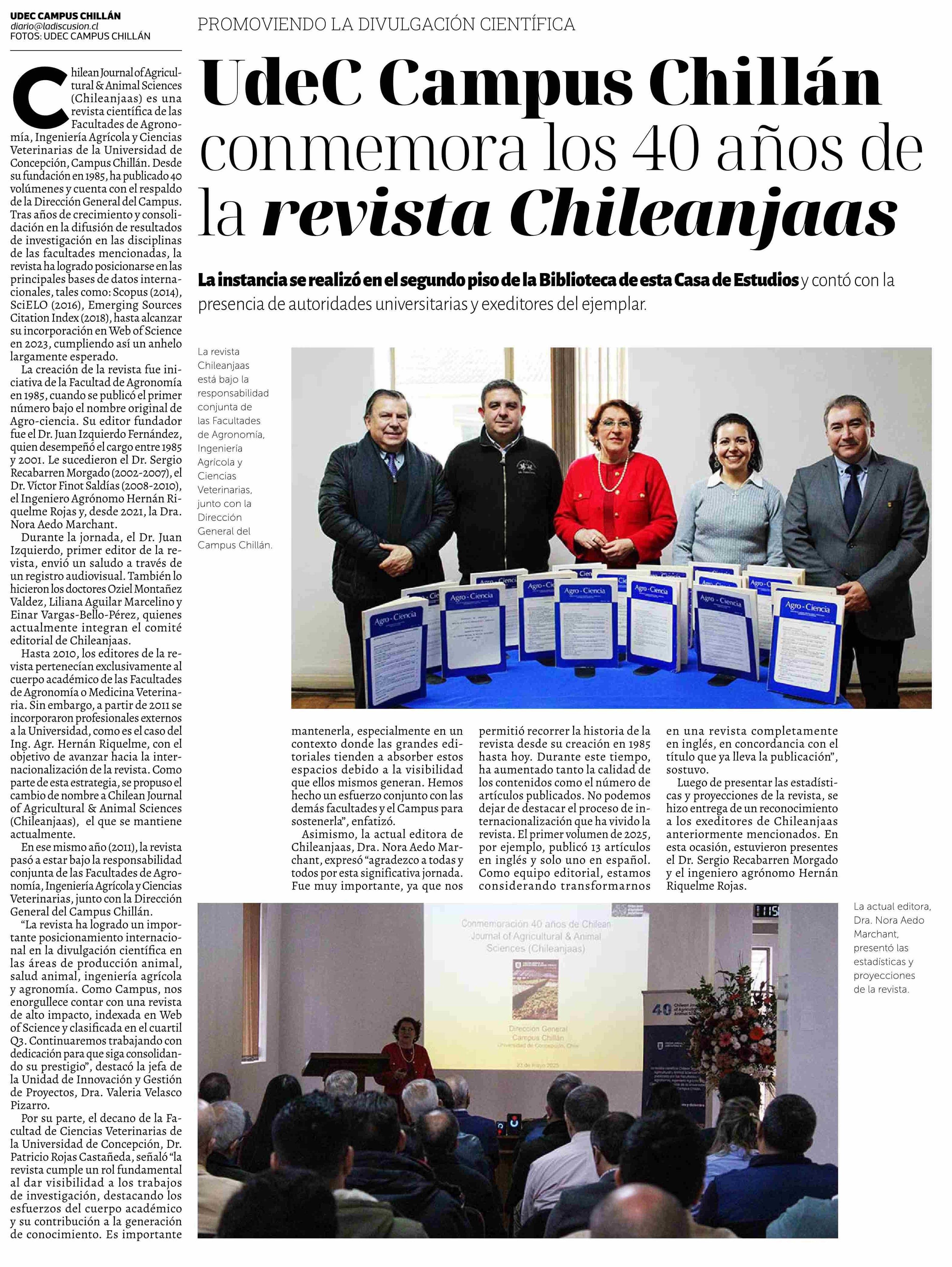 UdeC Campus Chillán conmemora los 40 años de la revista Chileanjaas 28-05-2025 La Discusión |