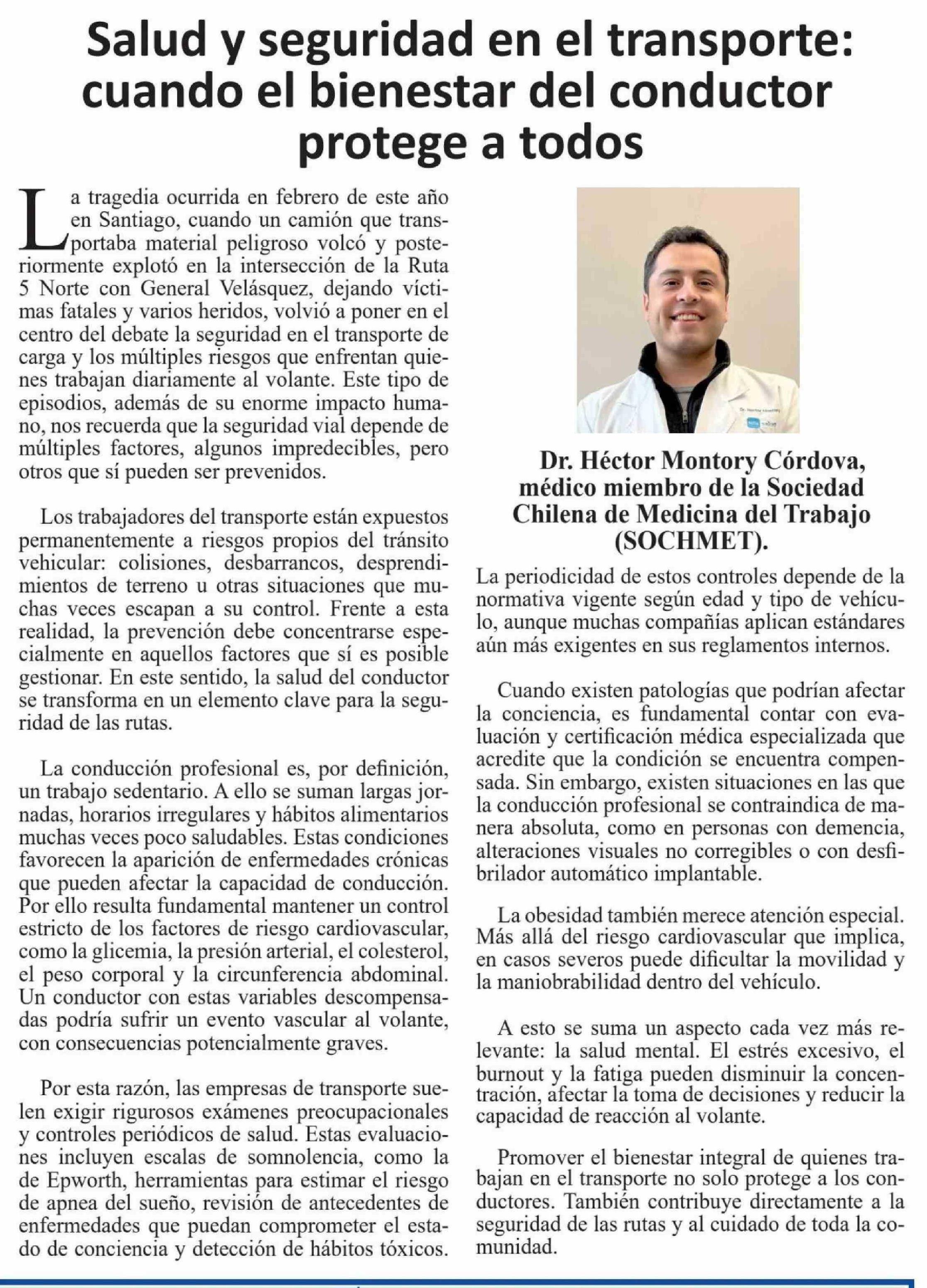 Título: Columnas de Opinión: Salud y seguridad en el transporte: cuando el bienestar del conductor protege a todos