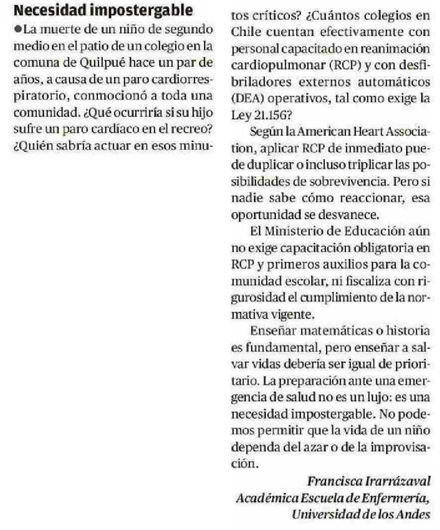 Necesidad impostergable 29-05-2025 El Mercurio de Valparaíso |