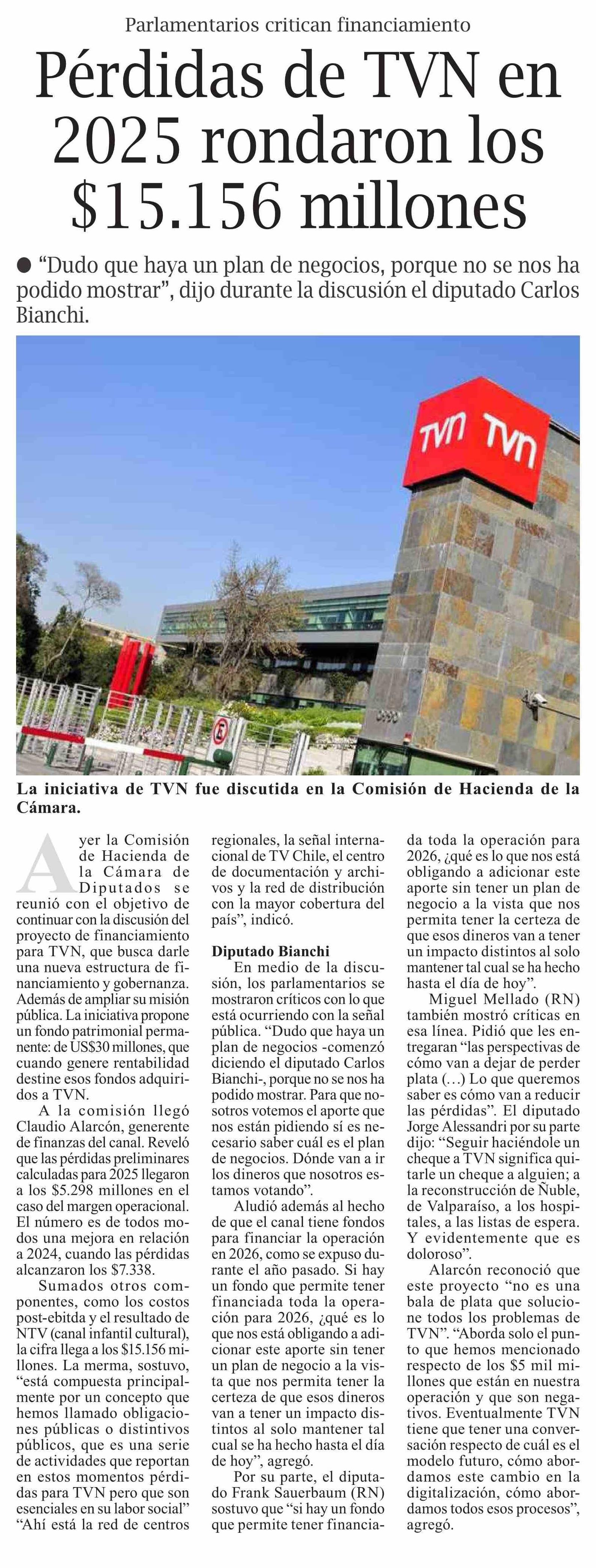 | Título: | Pérdidas de TVN en 2025 rondaron los $15.156 millones |
