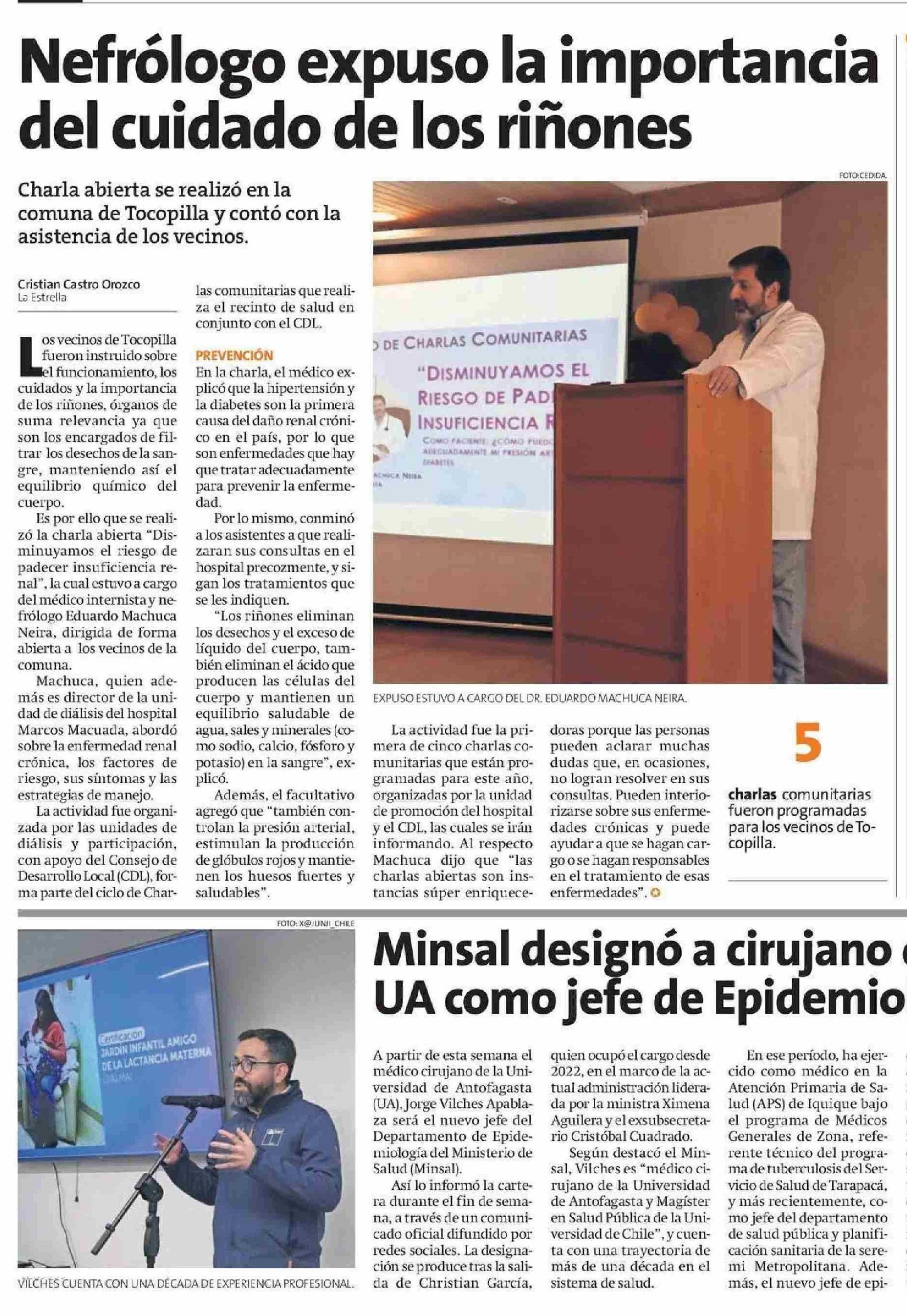 Nefrólogo expuso la importancia del cuidado de los riñones 20-05-2025 La Estrella de Antofagasta |