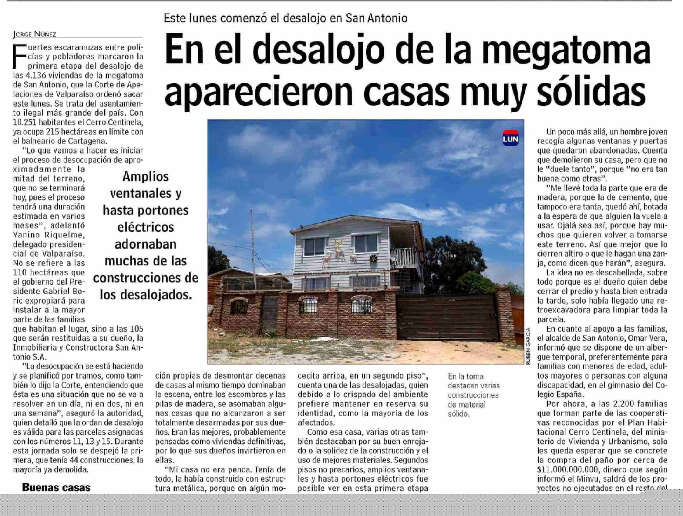 Título: En el desalojo de la megatoma aparecieron casas muy sólidas