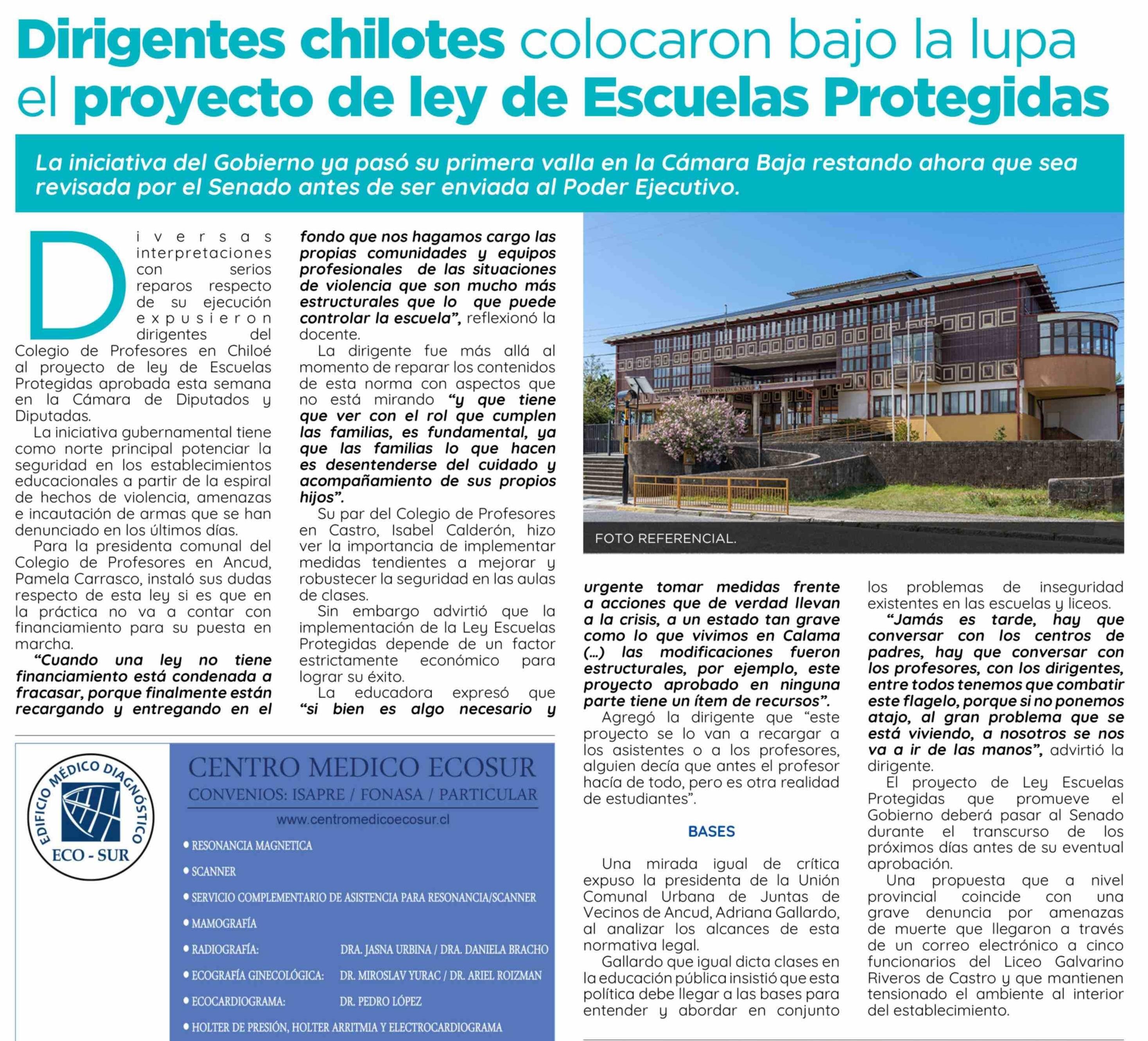 Título: Dirigentes chilotes colocaron bajo la lupa el proyecto de ley de Escuelas Protegidas