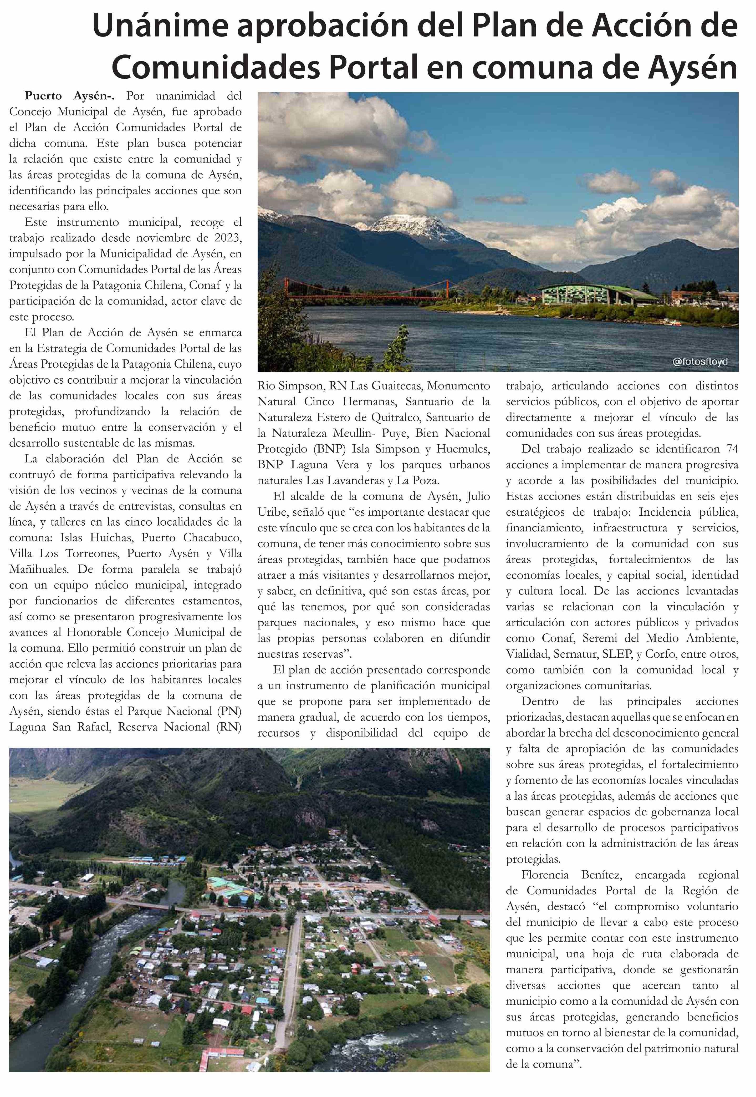 | Título: | Unánime aprobación del Plan de Acción de Comunidades Portal en comuna de Aysén |