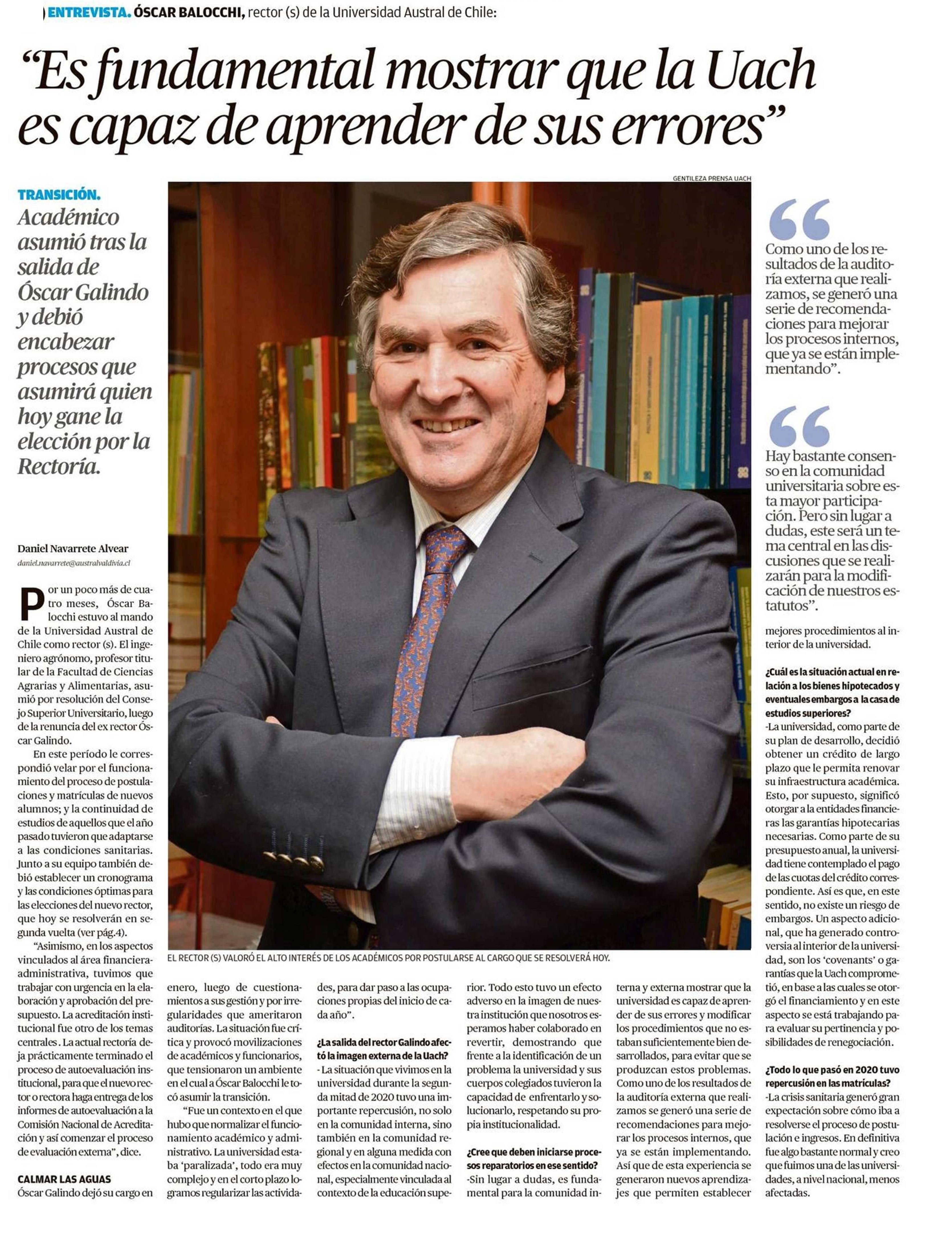 | Título: | “Es fundamental mostrar que la Uach es capaz de aprender de sus errores” |