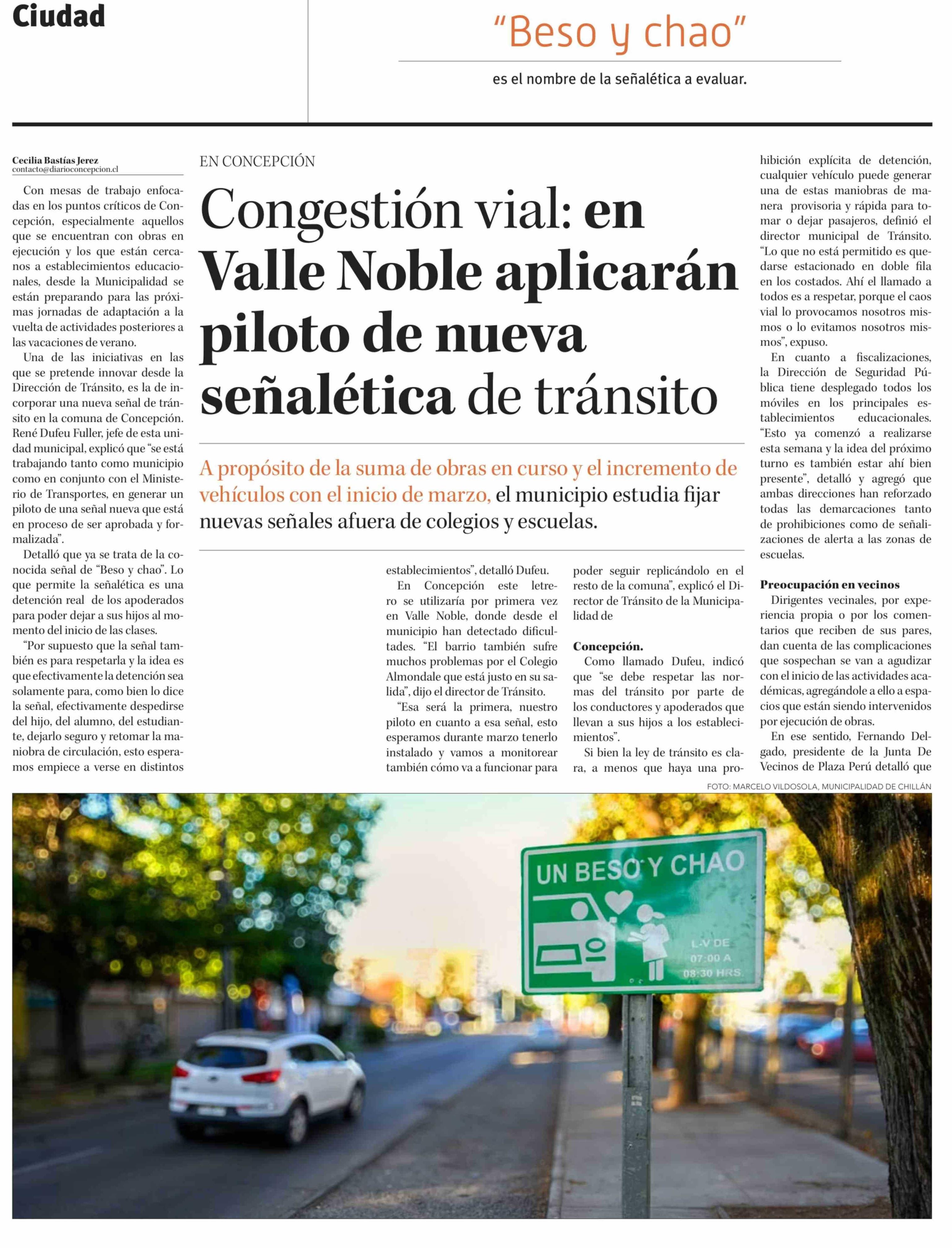 Congestión vial: en Valle Noble aplicarán piloto de nueva señalética de tránsito 04-03-2026 Diario Concepción |