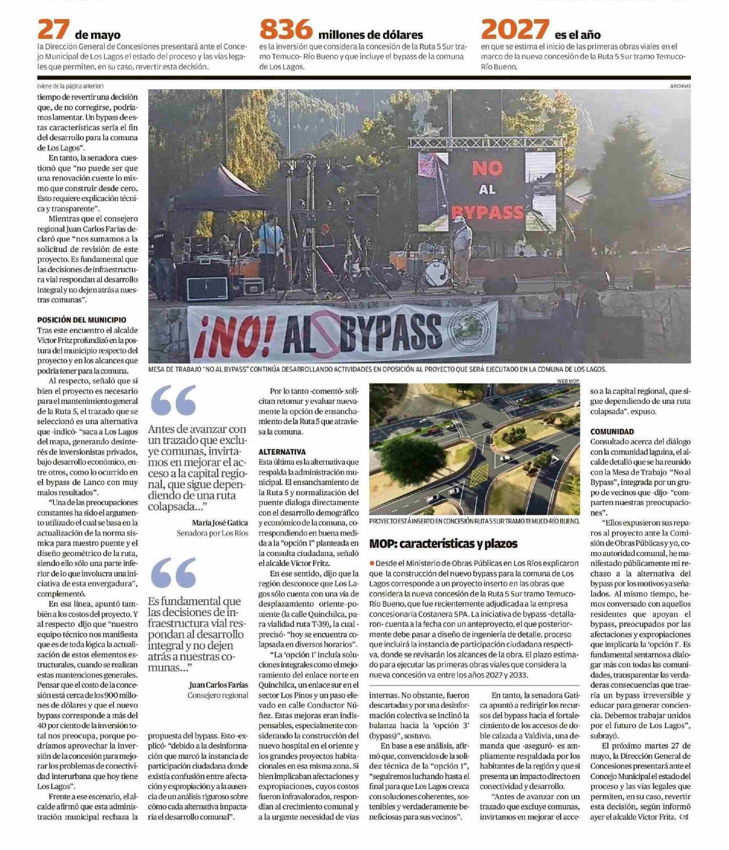 Exponen inquietud por “efectos negativos” de bypass de Los Lagos 16-05-2025 Diario Austral Región de Los Ríos |