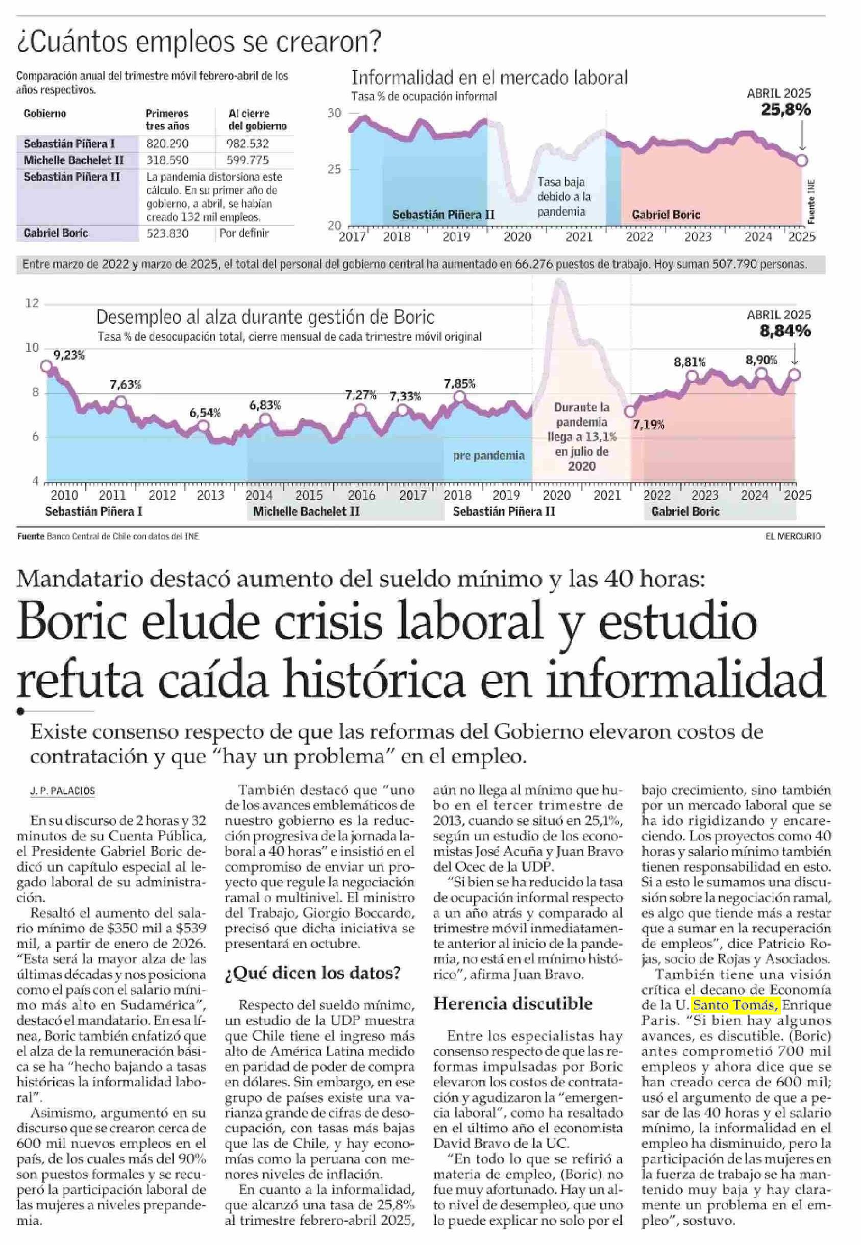Título: Boric elude crisis laboral y estudio refuta caída histórica en informalidad